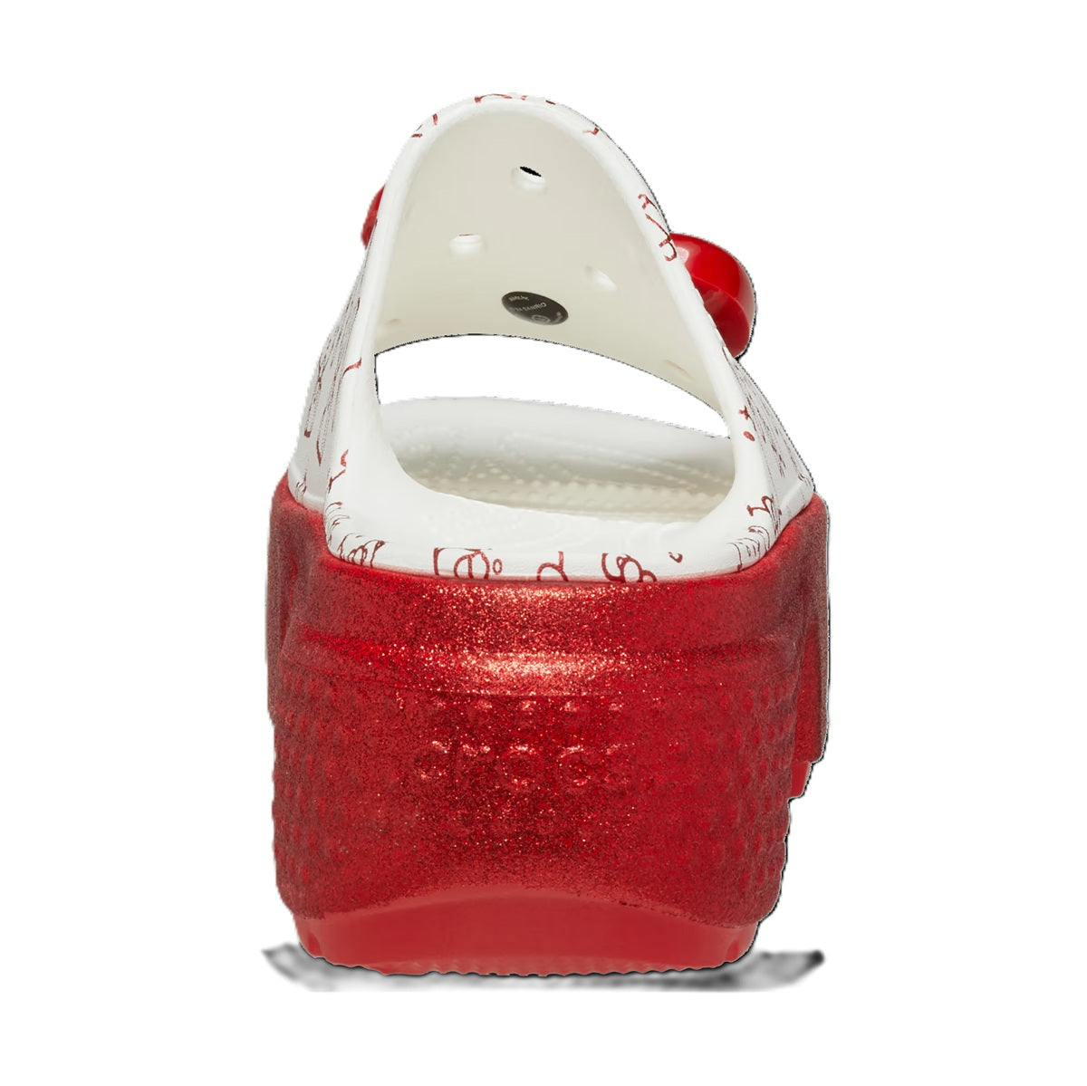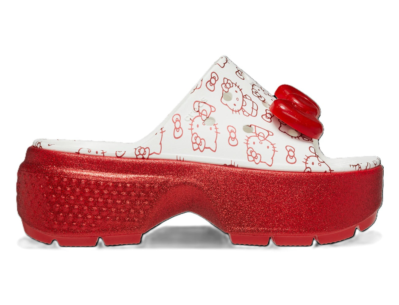 Crocs Hello Kitty Stomp Slide W LIMITED EDITION in occasione del 50° anniversario di Hello Kitty. Questo Hello Kitty Siren Clog realizzato per le fan che sono cresciute con l'icona globale e non hanno mai perso il loro splendore, con una suola audace e scintillante e un comfort che ti tiene in piedi, questa silhouette è pronta per una divertente serata fuori con gli amici. Dettagli: Altezza del tacco 6,9 cm / 2,7 pollici Include il ciondolo Jibbitz™ con fiocco rosso lucido di Hello Kitty Grafica Hello Kitty su tutta la tomaia Suola con carrarmato scintillante Logo Hello Kitty sul plantare Tallone in TPU stampato Le porte di ventilazione aumentano la traspirabilità e aiutano a eliminare acqua e detriti Facile da pulire e veloce da asciugare Personalizzabile con altri ciondoli Jibbitz Iconic Crocs Comfort™: Leggero. Flessibile. Comfort a 360 gradi. Salbini articoli tecnici per lo sport è rivenditore del brand Crocs .