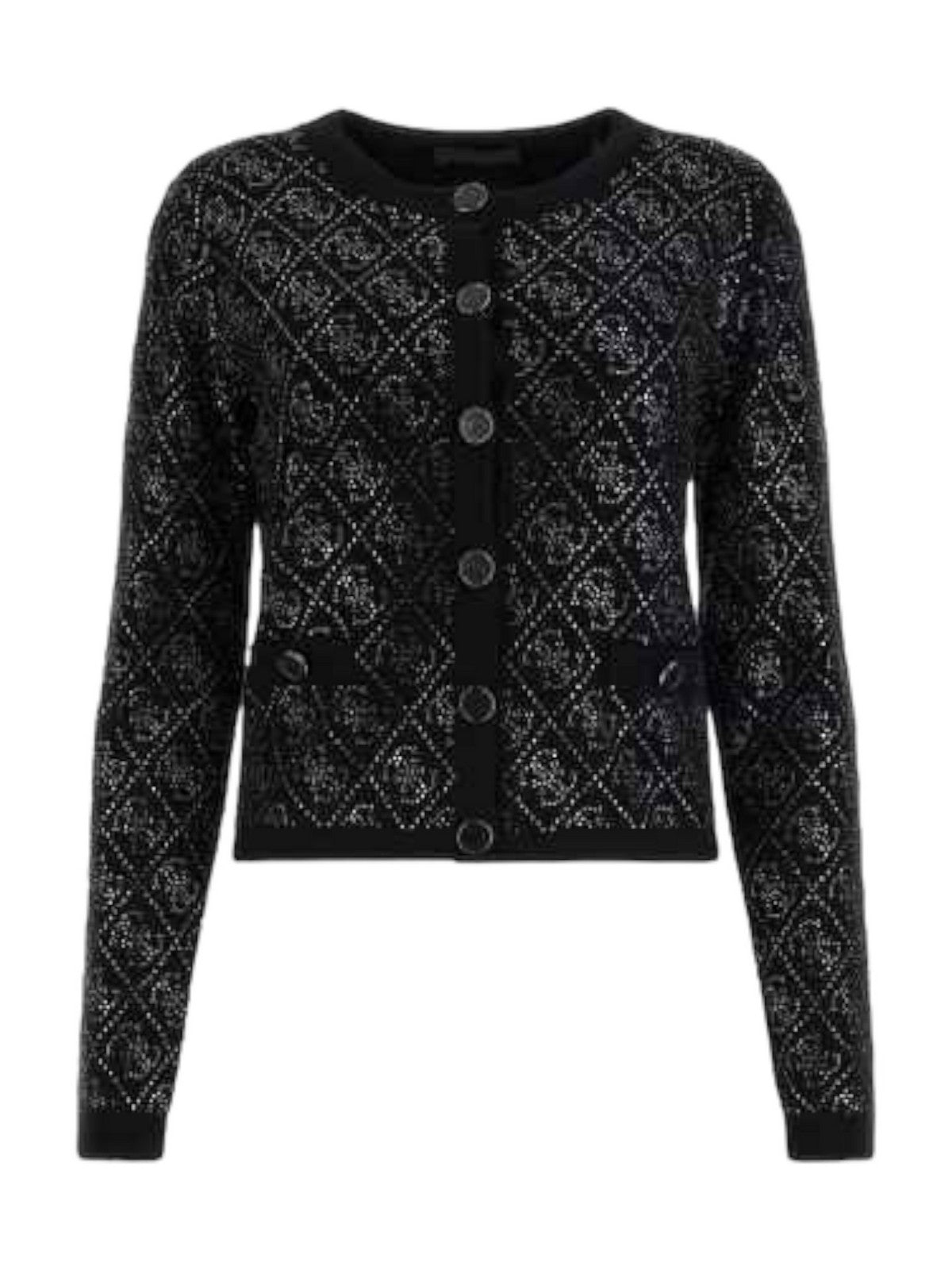 GUESS Cardigan Donna PAIGE 4G STONES LS CARDI SWTR W4YR25 Z3FN0 JBLK Nero