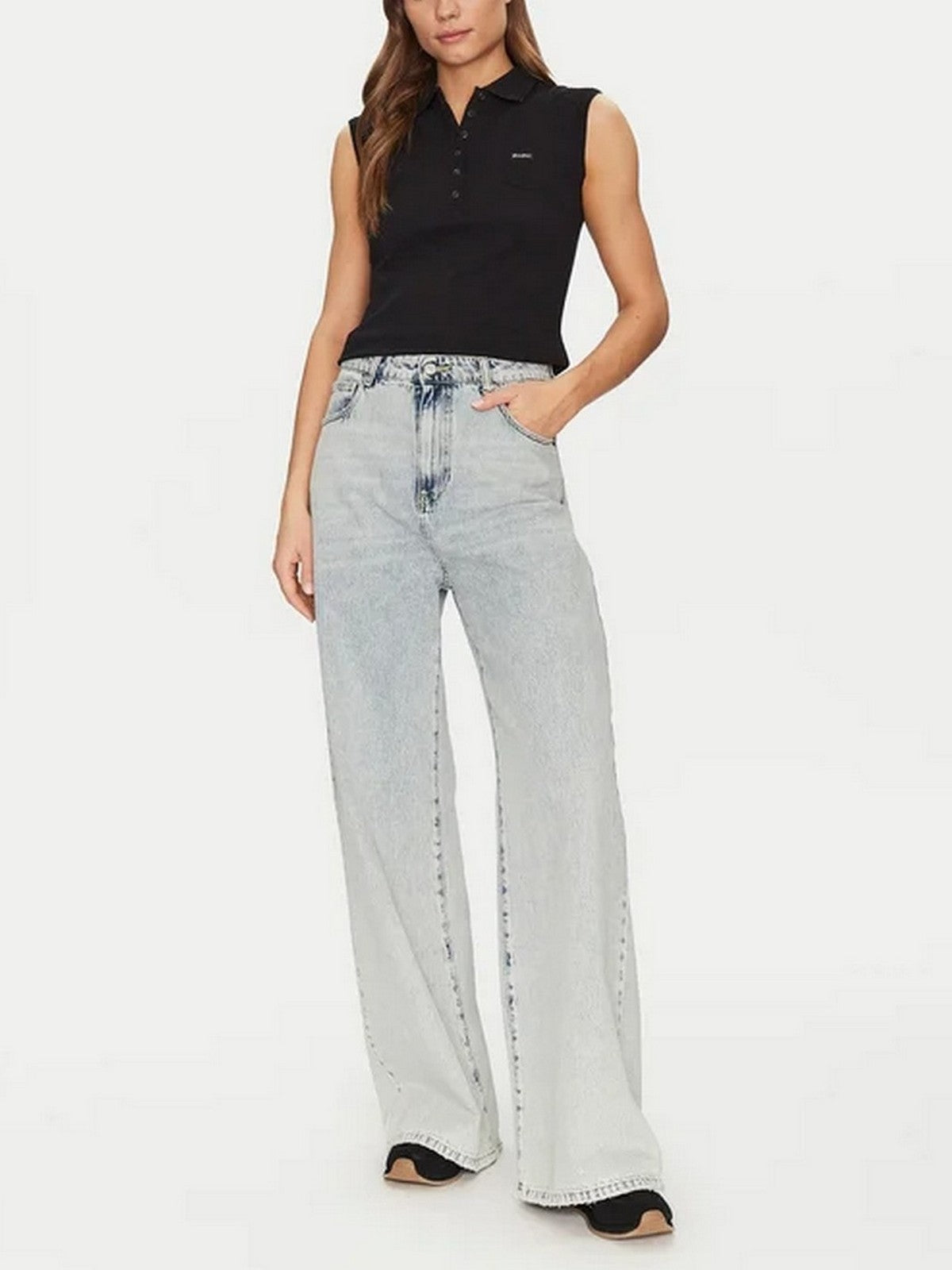 GUESS T-shirt Donna GJ SLEEVELESS COLLAR SLIM PKT W5GP24 KCYR1 JBLK Jet Black A996