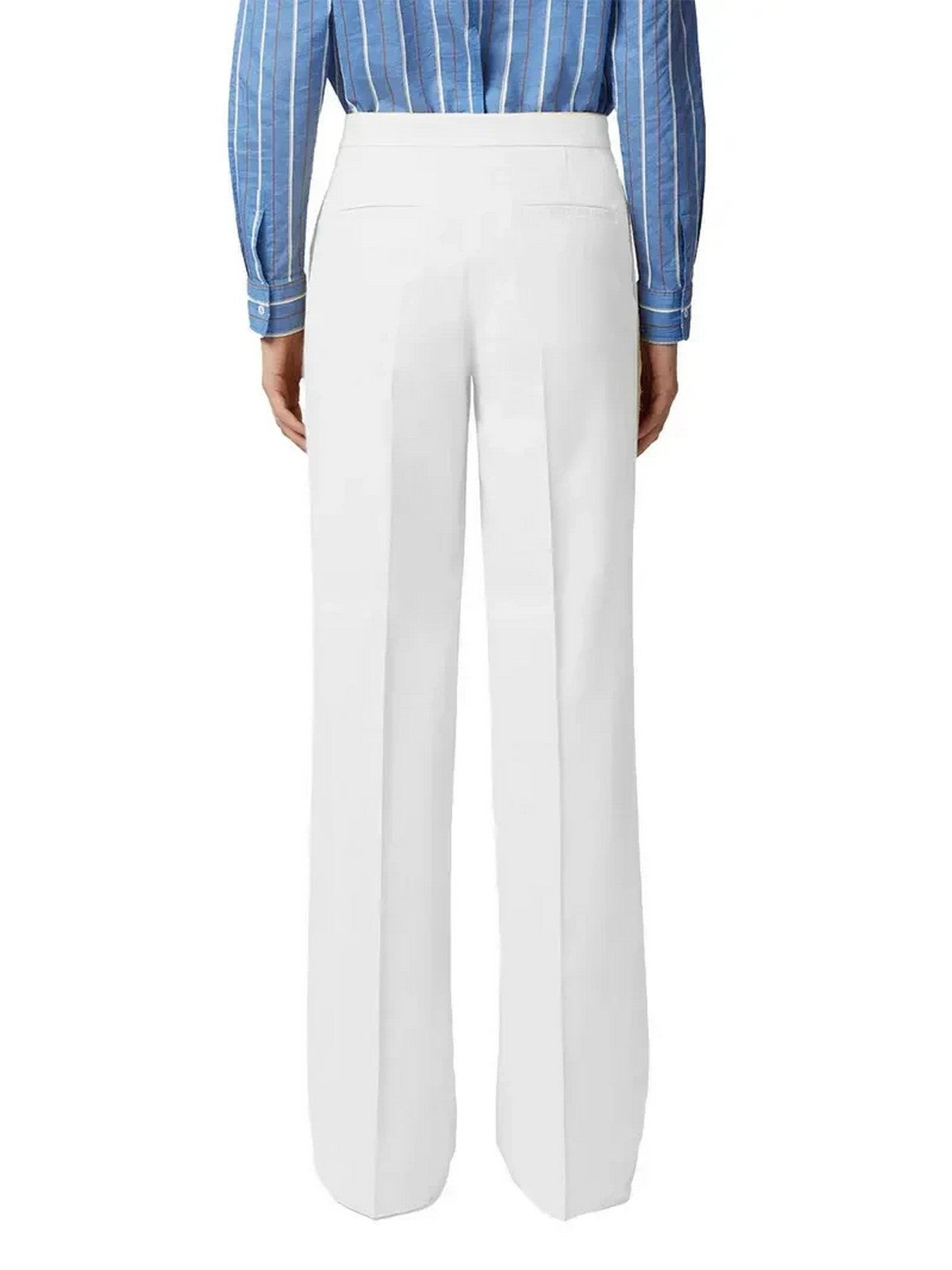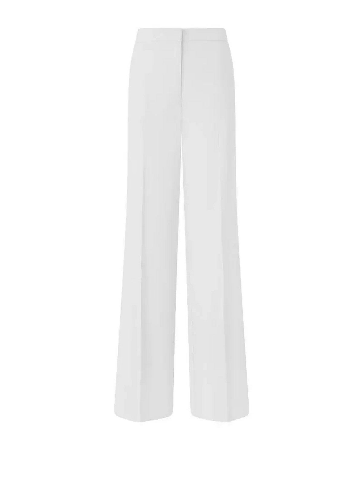 Pantaloni da donna in leggero tessuto di misto lino e viscosa stretch caratterizzato da una linea ampia, raffinata e rifinita con piega centrale sia davanti che sul retro della gamba. I pantaloni ampi sono completati da tasche sui fianchi e tasche a filetto sul retro, con chiusura con zip e gancio a uomo. I pantaloni in lino sono perfetti indossati con una camicia vivace e il blazer abbinato, per un tailleur estivo da sfoggiare a una cerimonia o anche per una giornata lavorativa importante.