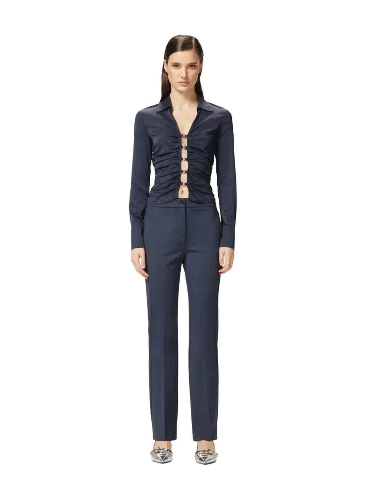 Pantaloni Donna Pinko - Pantaloni eleganti svasati a vita alta - Blu