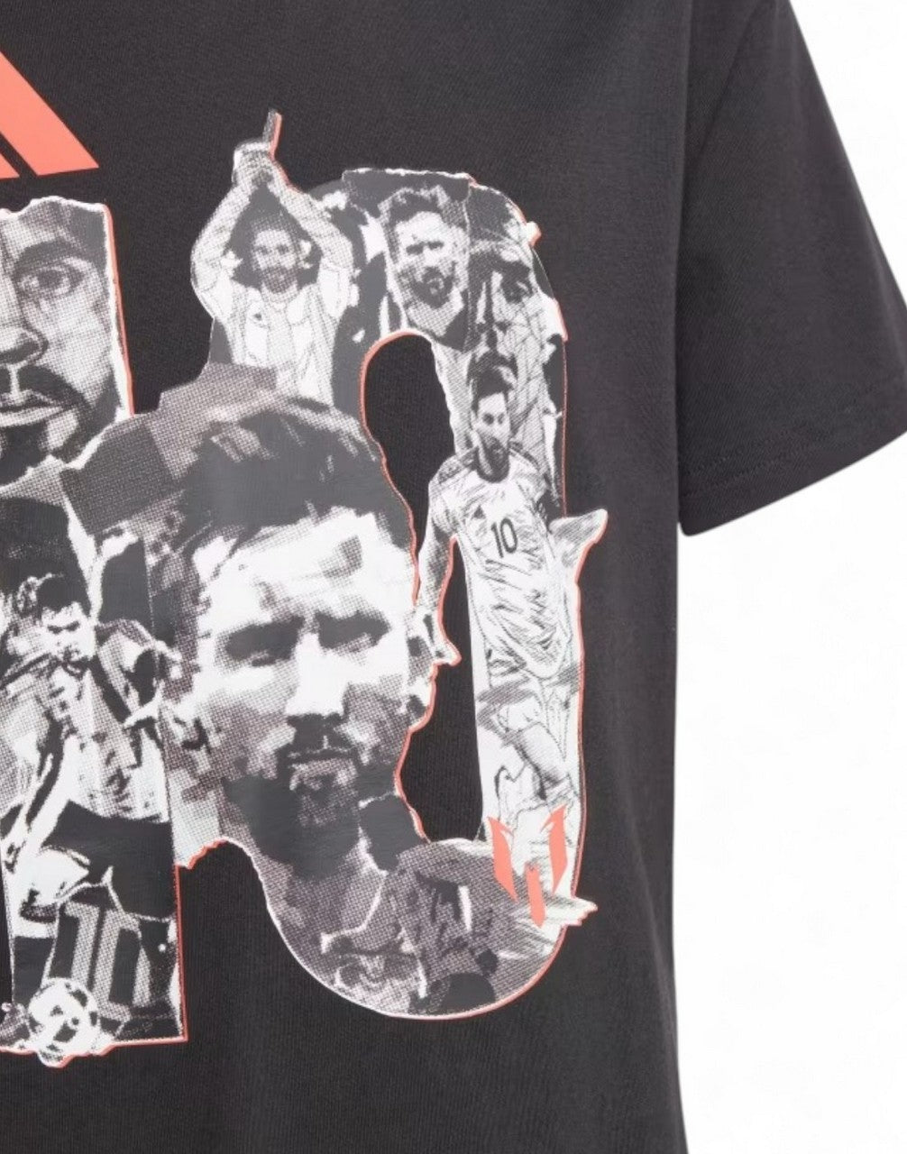 La maglia da bambino Adidas fa parte della collezione Messi Football Graphic T-Shirt ed è una t-shirt casual pensata per i giovani appassionati di calcio. Questa maglietta celebra il talento di Lionel Messi attraverso un design grafico distintivo.