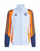 La tuta ufficiale da allenamento del Real Madrid ,pensata per i giovani tifosi che desiderano allenarsi o rilassarsi con stile e comfort.