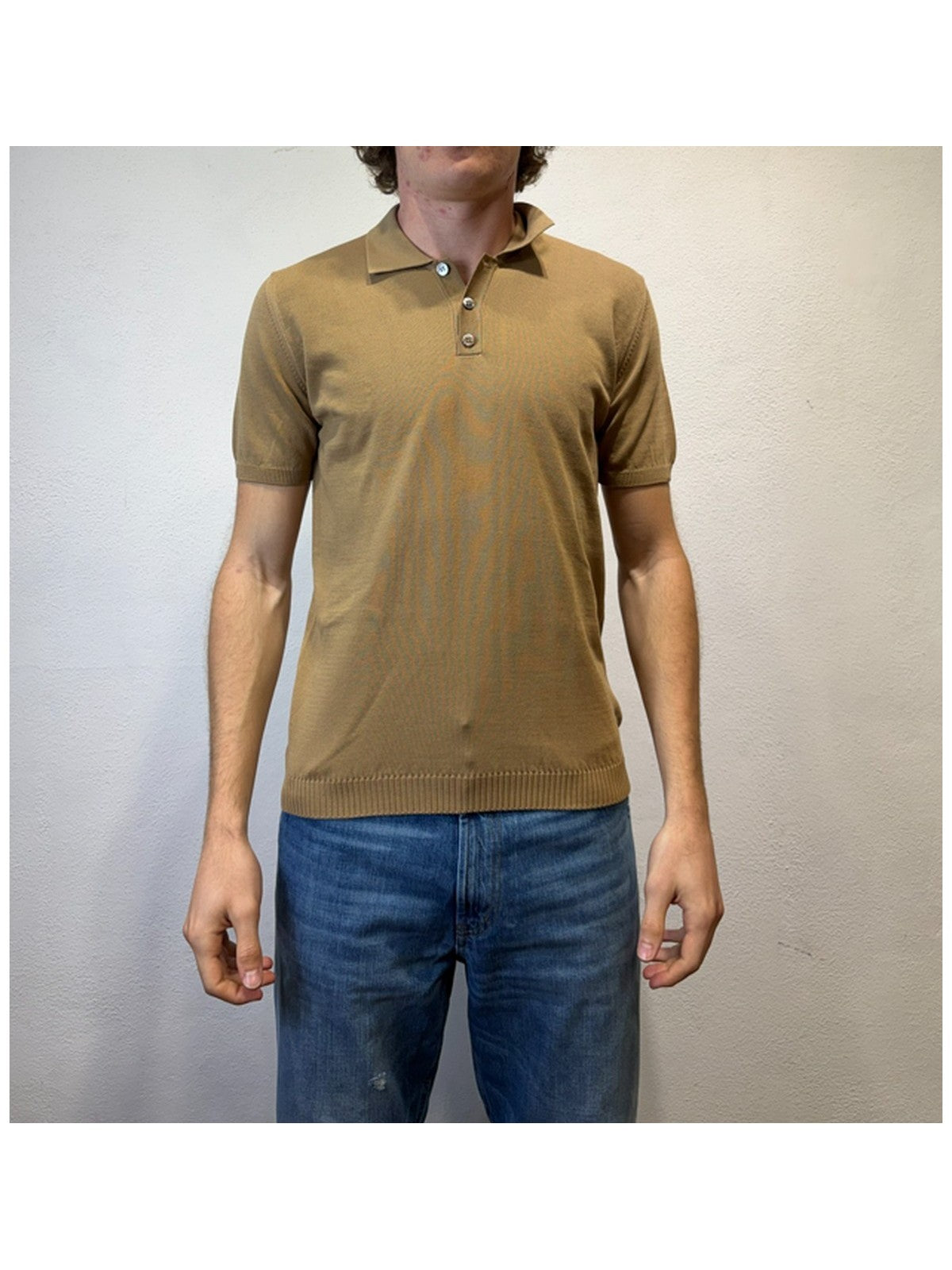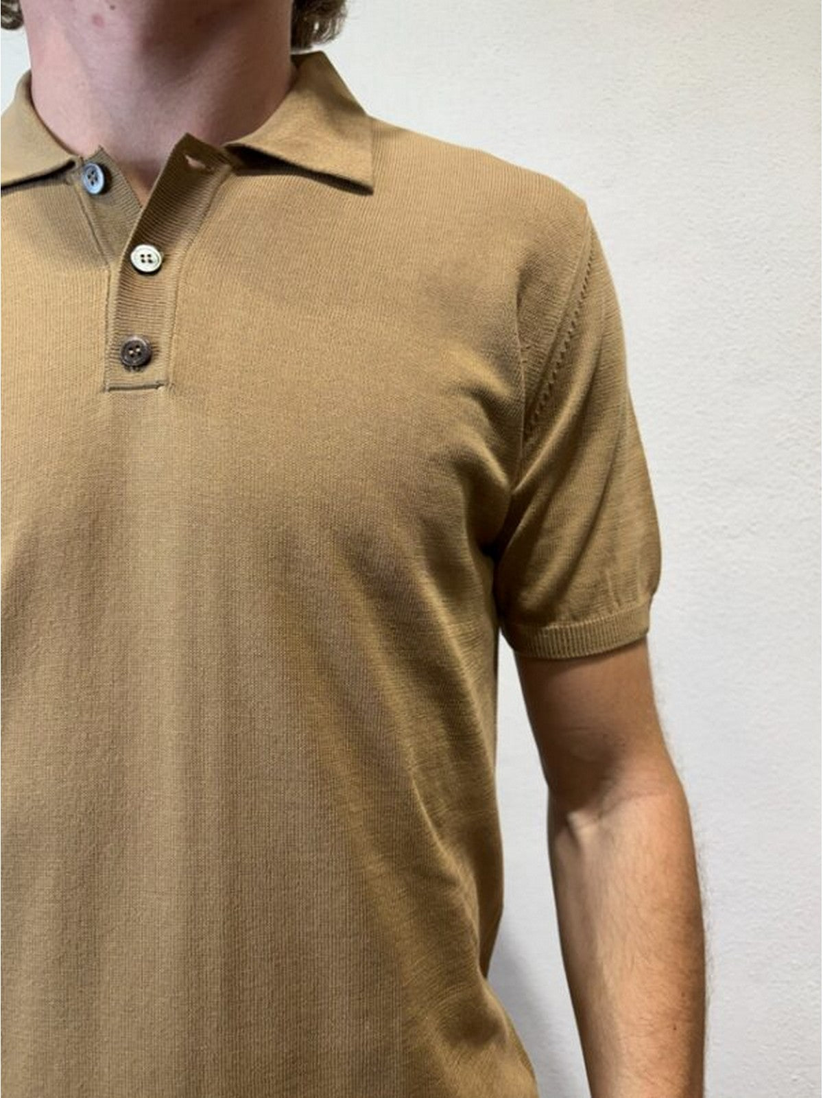 • Collo polo con tre bottoni.