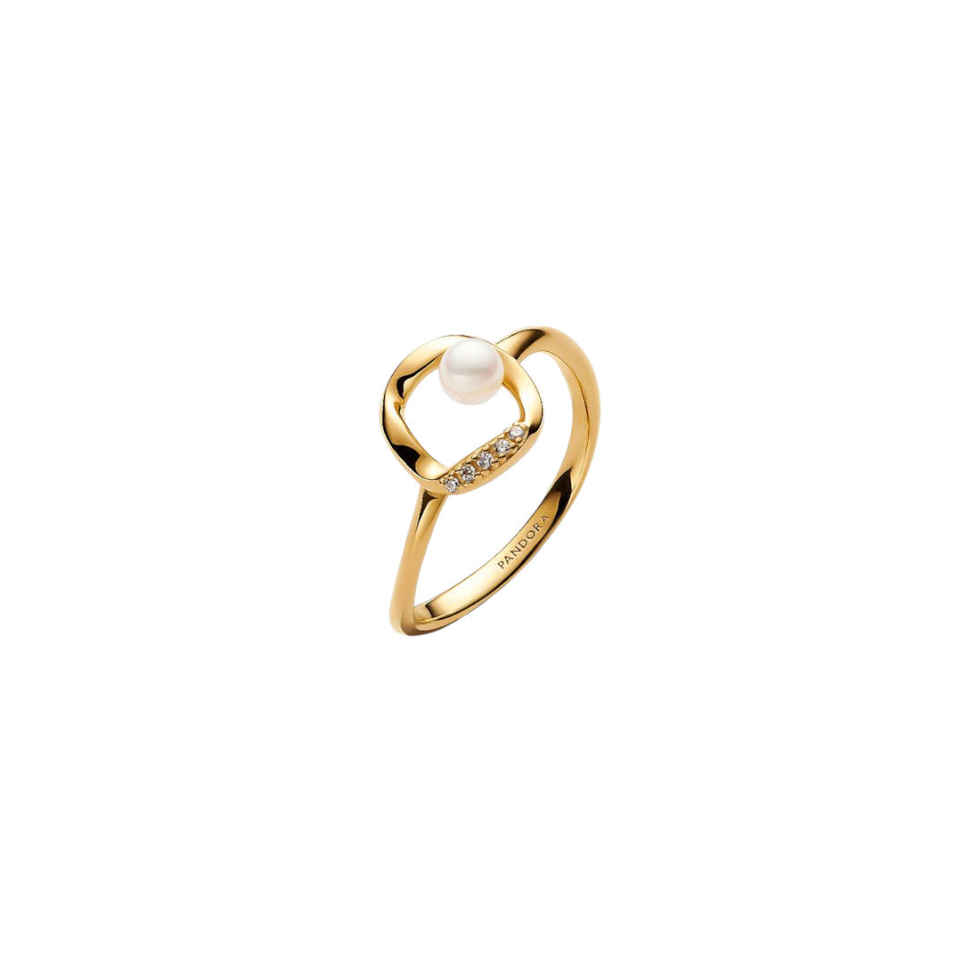 Anello Donna Pandora Cerchio Linea Sinuosa con Perla d'Acqua Dolce Coltivata e Pavè - 163831C01