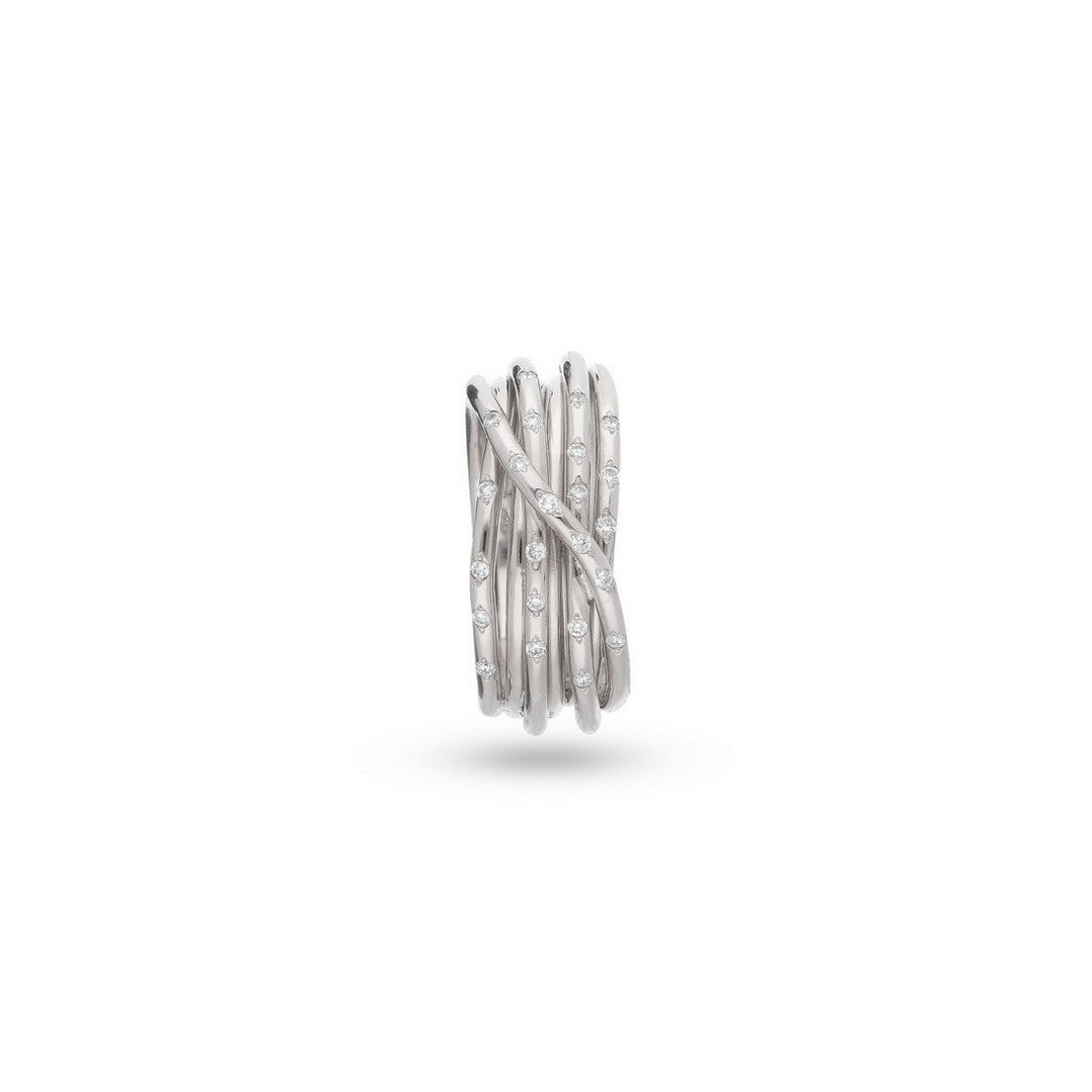 Anello Filodellavita Leda Collection, 7 Fili in Oro Bianco 18kt e 23 Diamanti Bianchi (Tot. 0.28 ct)
