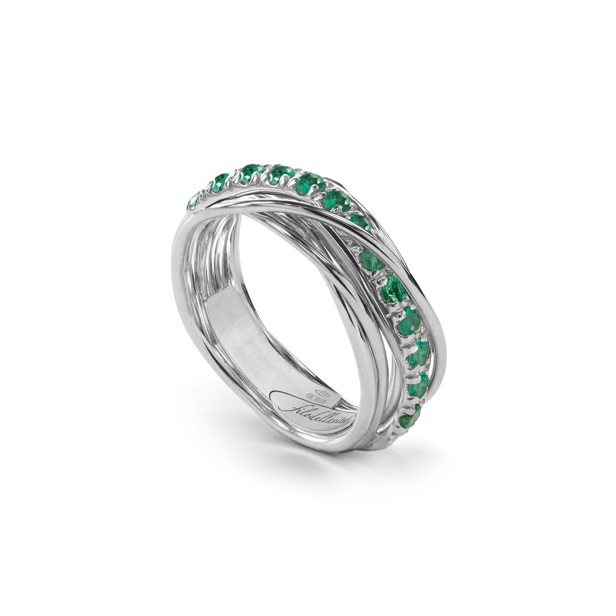 Anello Filodellavita Prezioso Collection, 7 Fili in Argento .950 al Palladio e 15 Smeraldi 0.65 ct tot.