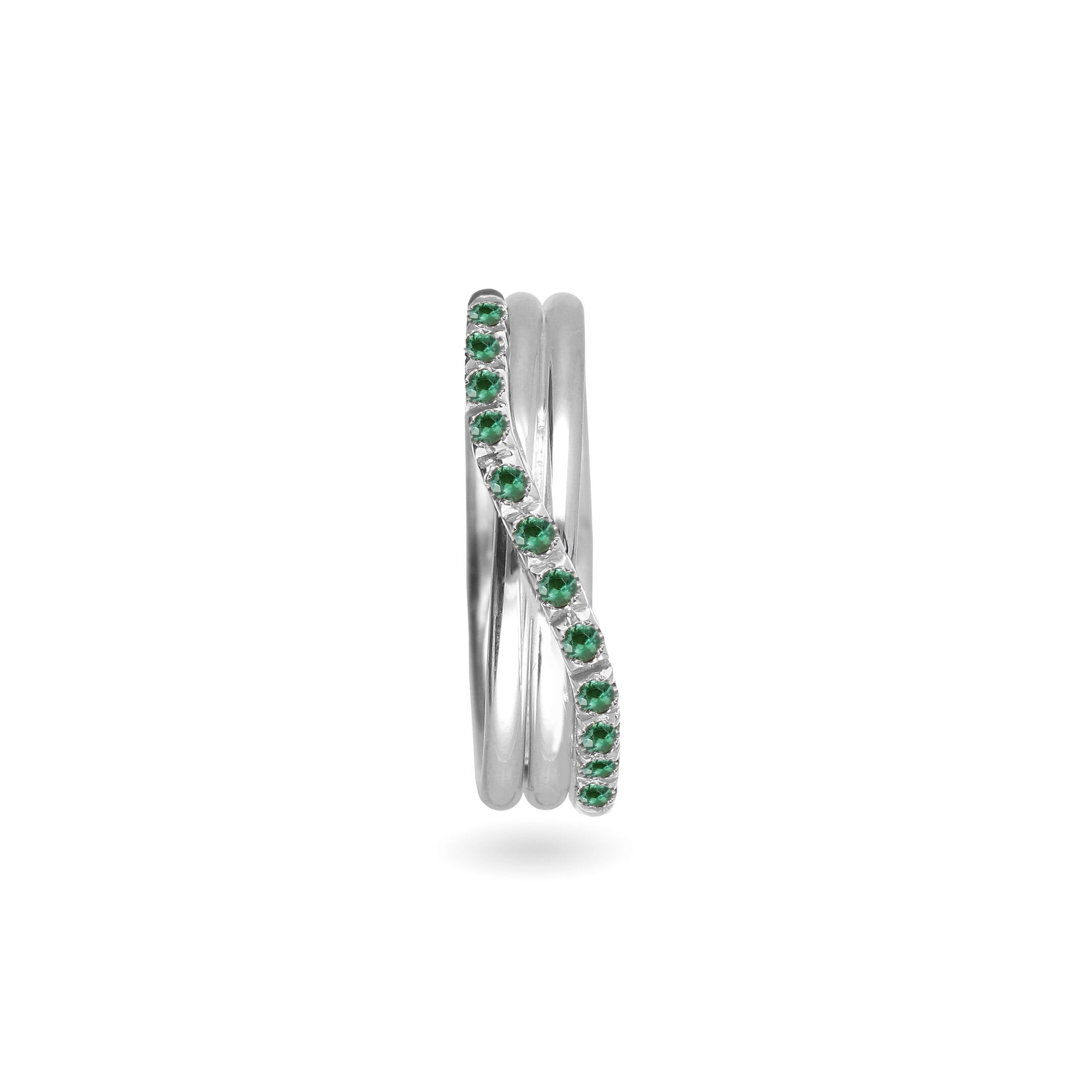 Anello Filodellavita Prezioso Collection, 3 Fili in Argento .950 al Palladio 950 con 12 Smeraldi 0.20 ct tot.