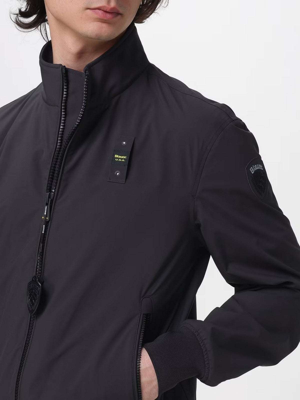 Bomber BLAUER in neoprene leggero monocolore con cuciture interne nastrate.