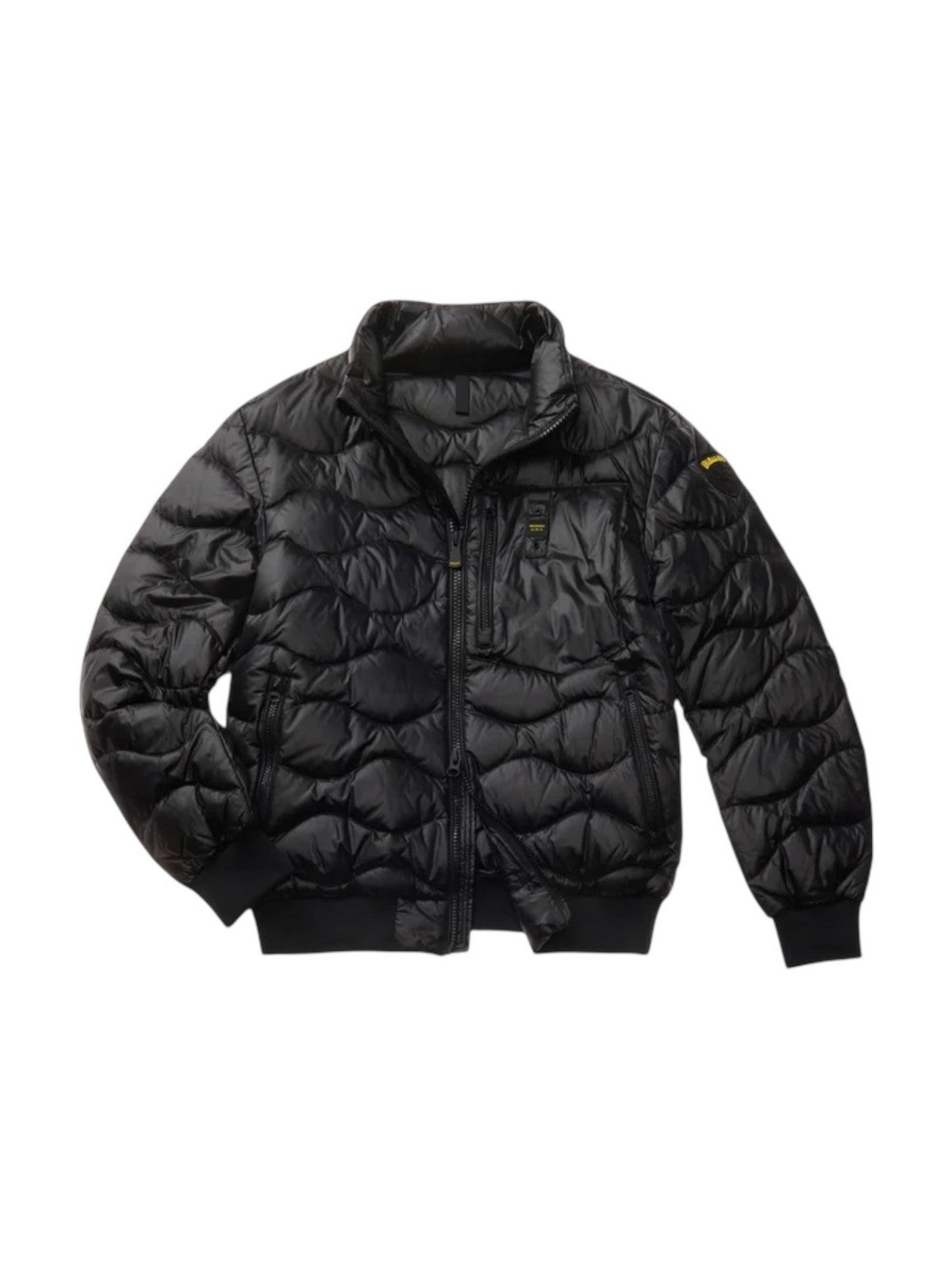 Piumino BLAUER in nylon lucido imbottito piuma e impunturato ad onde orizzontali. Piumino con tasca sul petto per aumentare la praticità al capo iconico della linea.