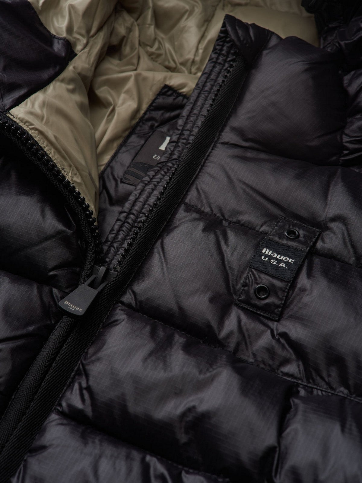 Piumino lungo BLAUER in nylon idrorepellente micro rip.