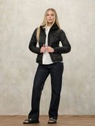 Piumino BLAUER con cuciture ad onde orizzontali con fodera in tono. Imbottitura leggera in morbida piuma e taglio svasato per risaltare la figura.