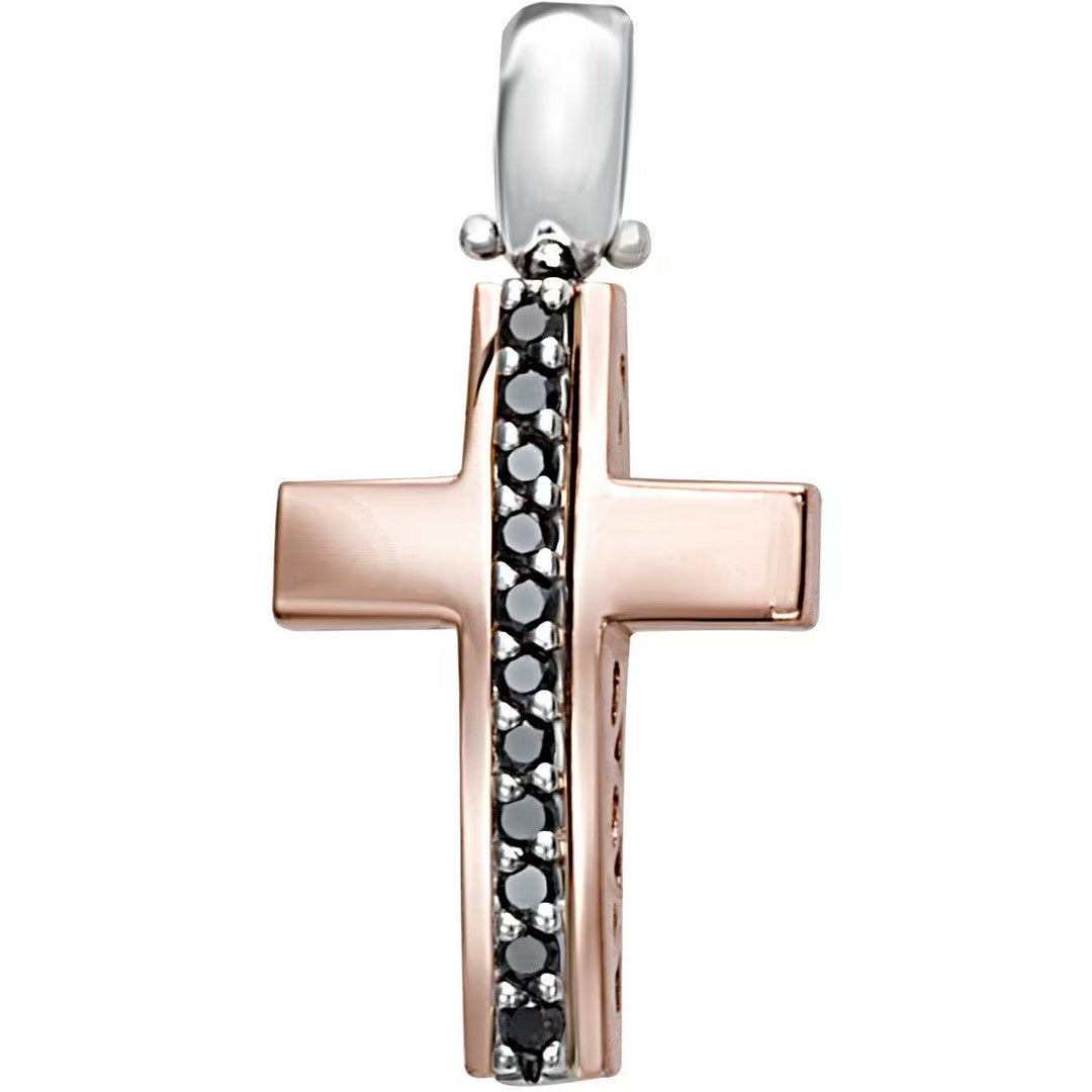 Gioiello Bliss, Linea Gioielleria , In Oro 750, Pendino Croce Uomo In Oro Bianco/Rosa E Dia Black - No Catena- Oro Bianco/Rosa, Carati Diamante E Colore Black, Colore Pietra Black