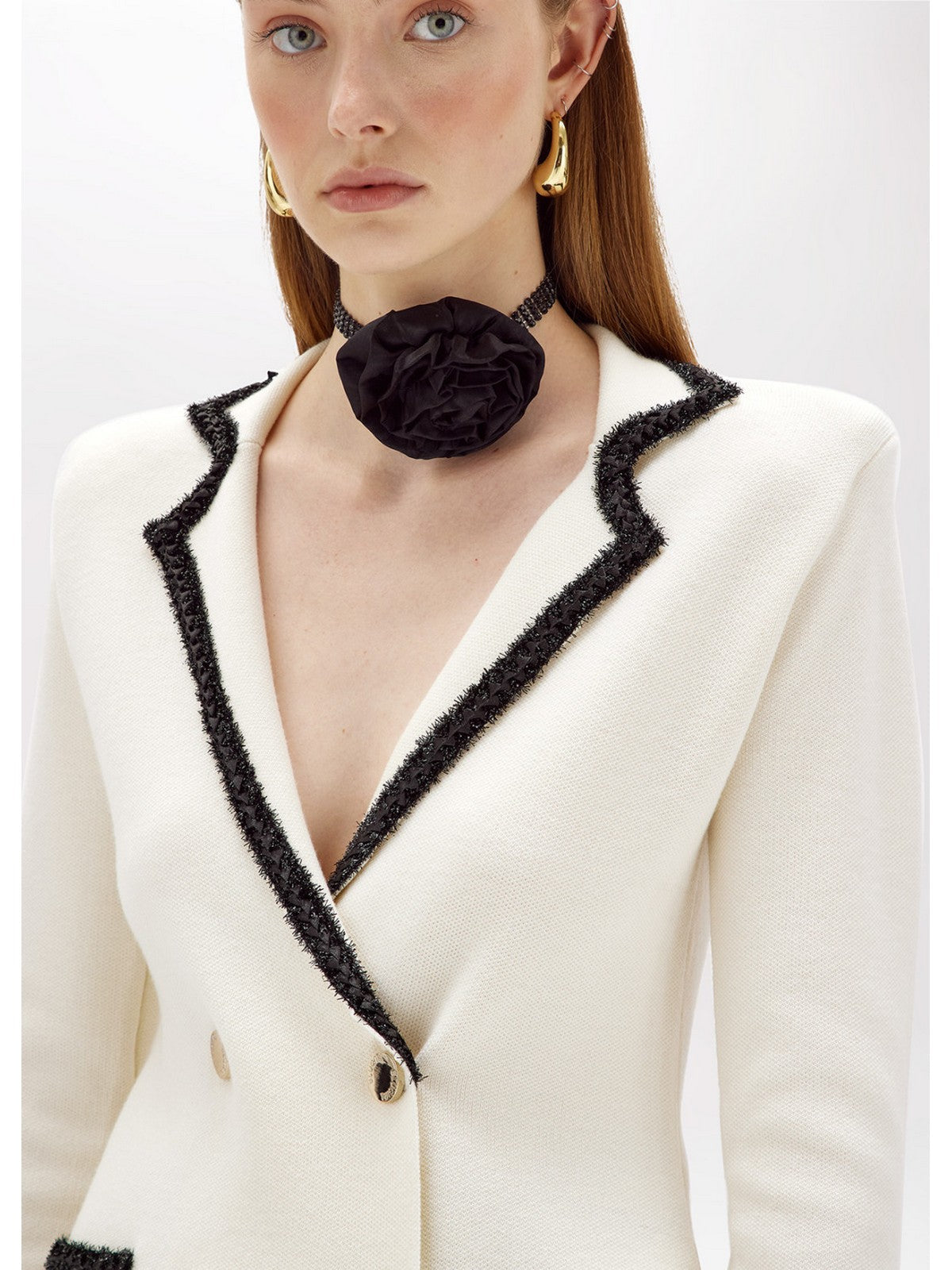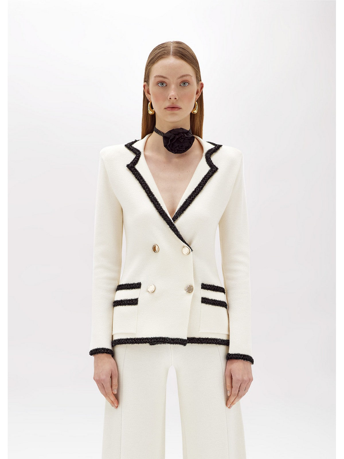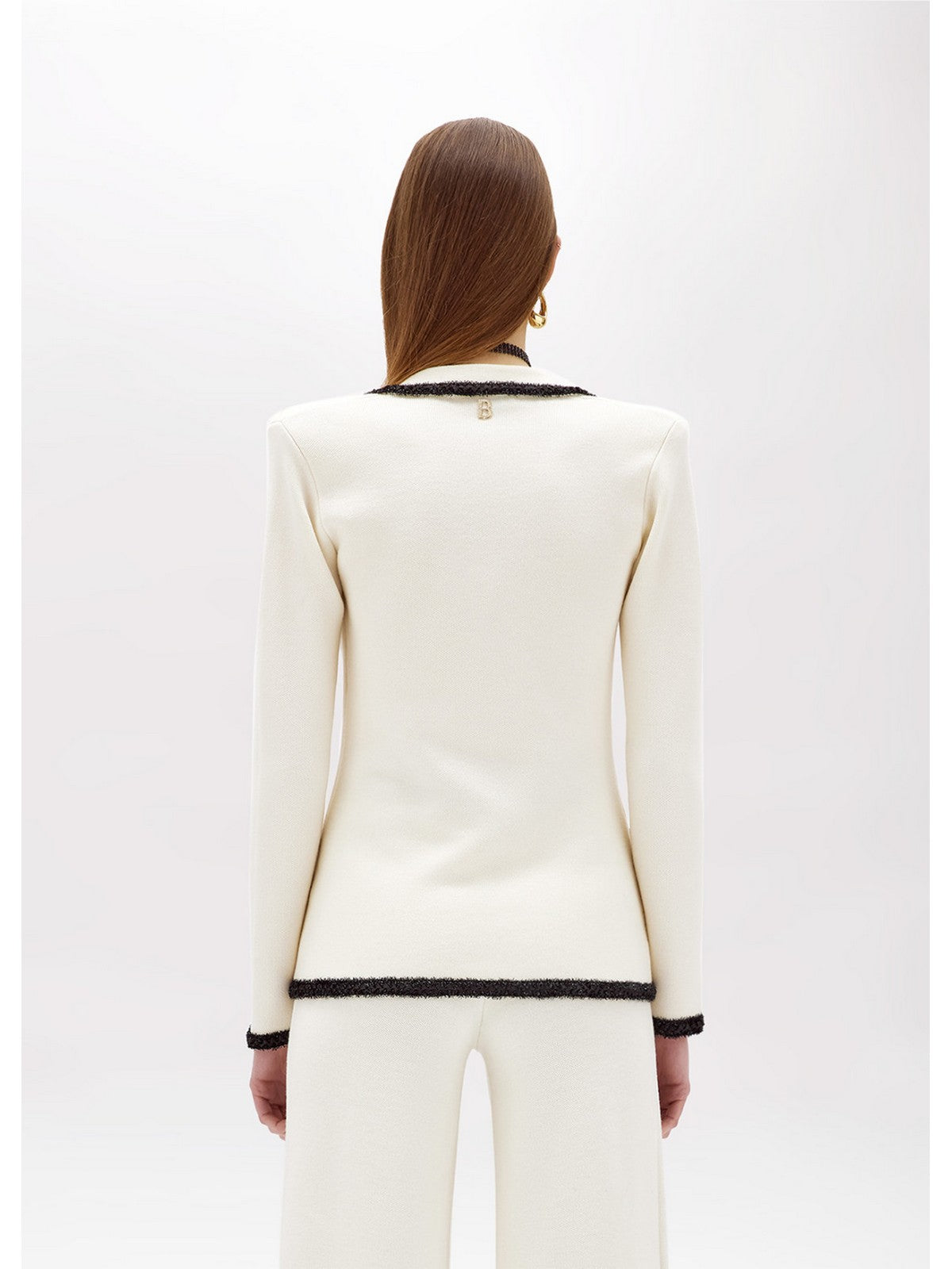 Giacca blazer BLUGIRL in maglia di misto lana punto stoffa con profili a contrasto rifiniti da passamaneria lurex
