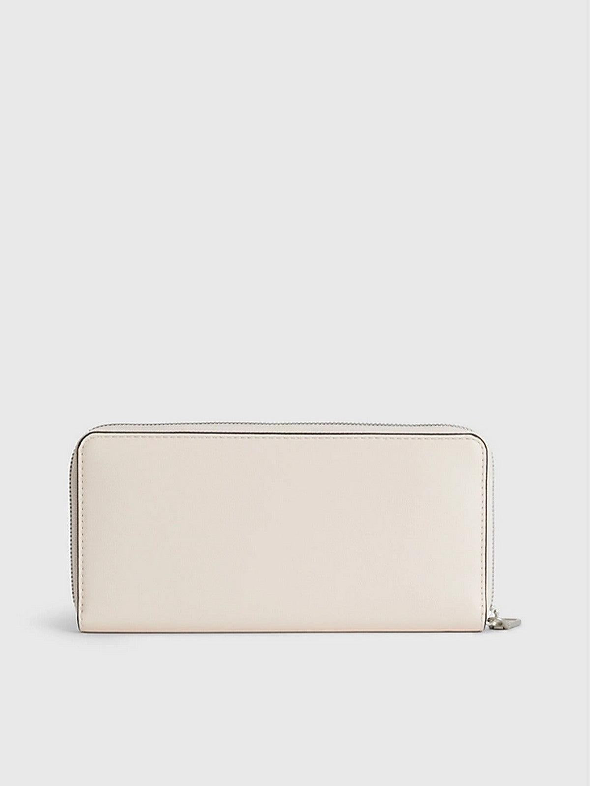 Portafoglio CALVIN KLEIN donna in similpelle. Tinta unita con logo sul fronte a contrasto. Chiusura con zip. All'interno 8 scomparti per le carte, 2 scomparti per banconote e taschino portamonete con zip