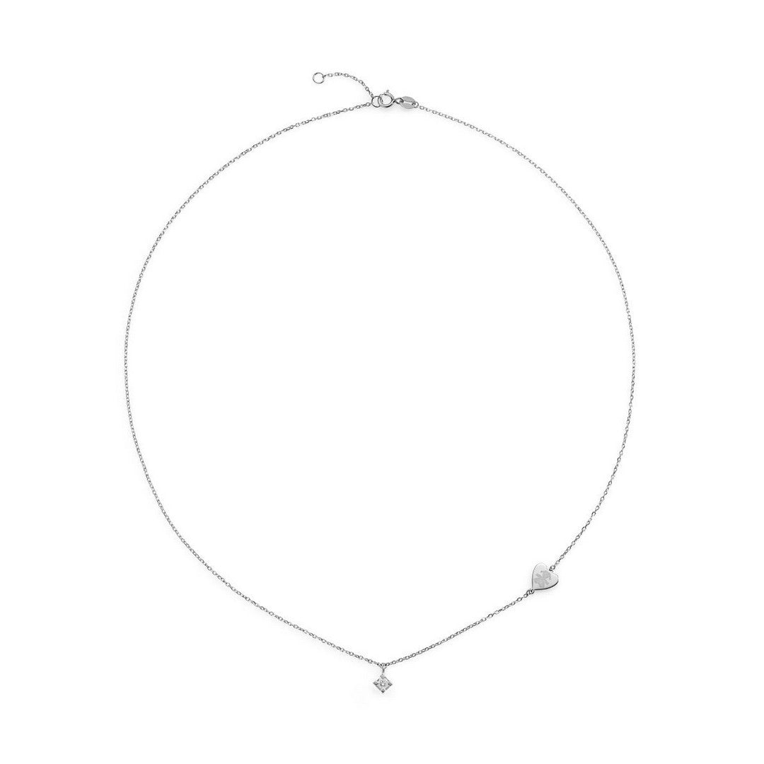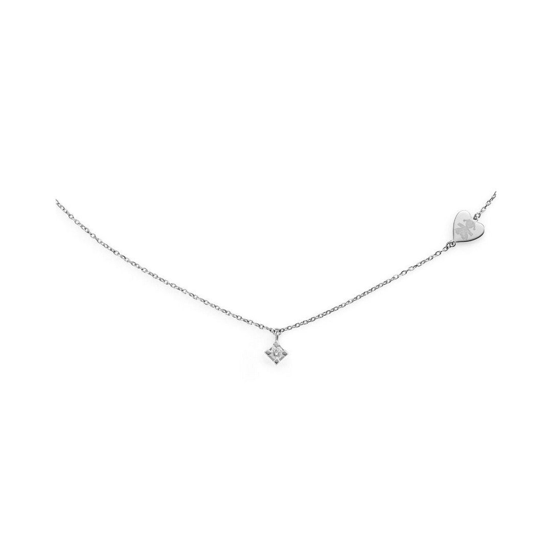 Collana in oro bianco 18kt con diamante 0,07ct e targhetta cuore con sagoma bimba incisa.
