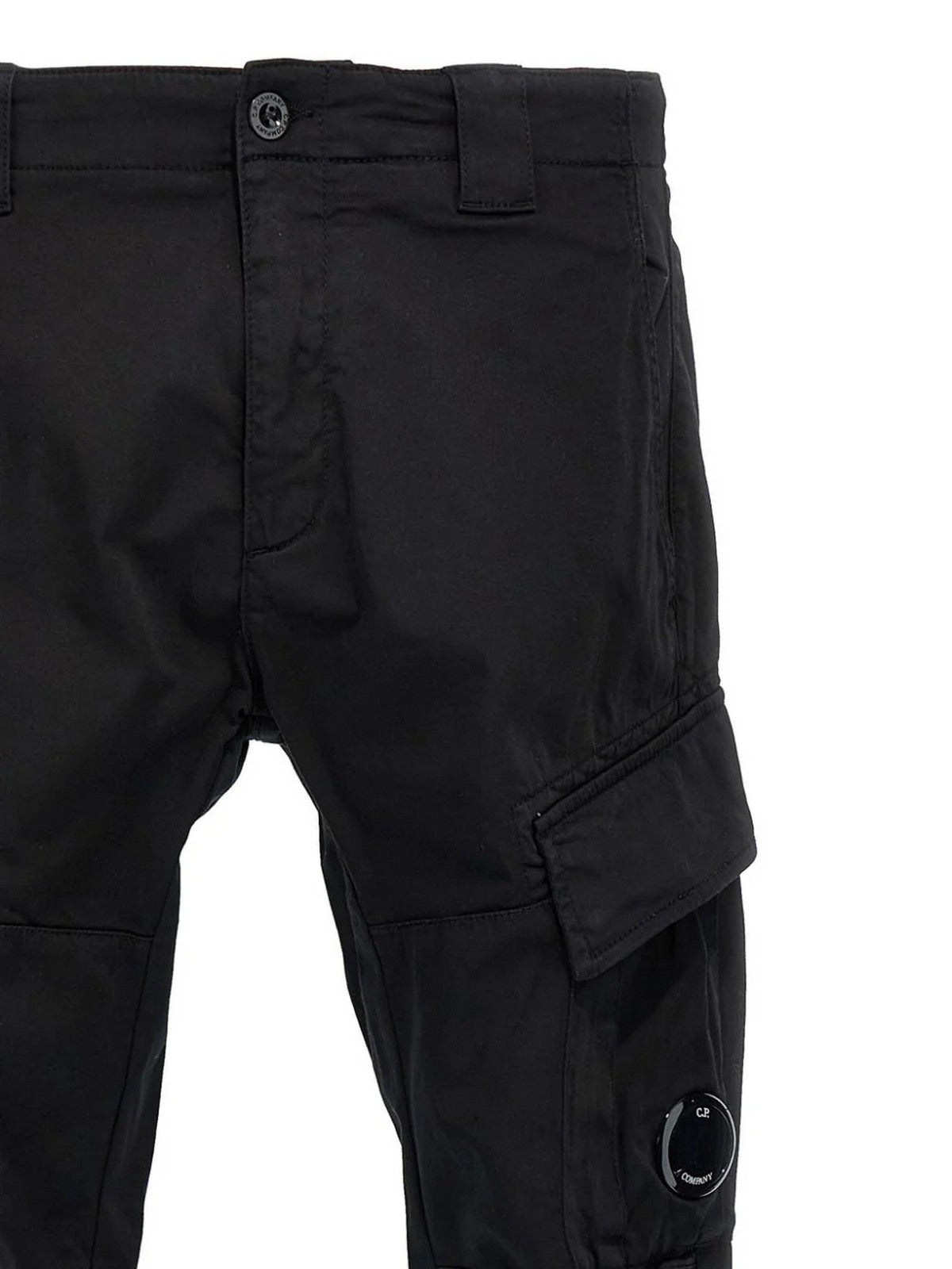 Pantaloni cargo CP COMPANY realizzati in raso di cotone stretch smerigliato, caratterizzati da Lente