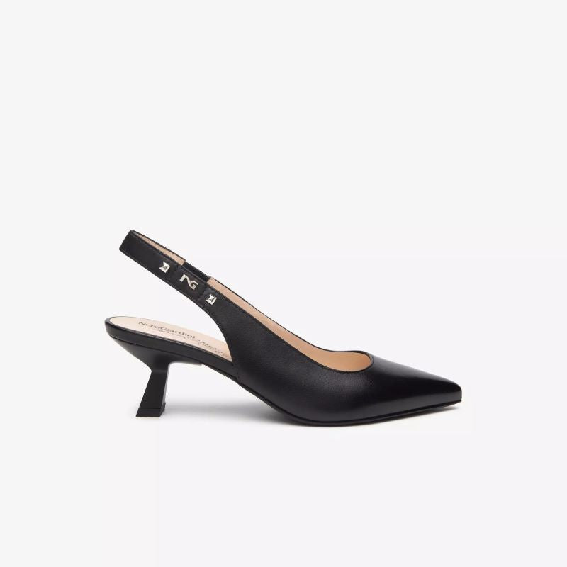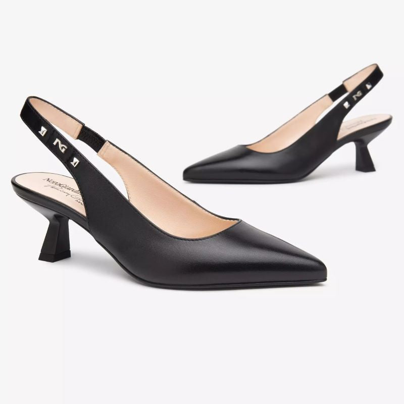 La NeroGiardini è una décolleté sling-back elegante e raffinata, parte della Premium Collection di NeroGiardini. Realizzata in vera pelle pieno fiore, esprime un design sofisticato con punta affusolata e tallone scoperto, perfetta per valorizzare il piede con stile e femminilità