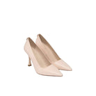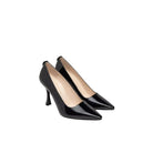 Il tacco svasato da 9,5 cm slancia la figura offrendo al contempo stabilità e comfort, mentre la fodera in pelle assicura traspirabilità e una calzata avvolgente. Il design è essenziale ma sofisticato, con una linea pulita che si adatta a ogni tipo di outfit, dal classico tubino nero a un tailleur moderno.