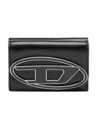 Portafoglio da donna DIESEL in pelle con design a tre ante. Decorato con maxi logo Oval D in metallo smaltato, questo modello può contenere carte e banconote ed è dotato di una pratica tasca per monete.