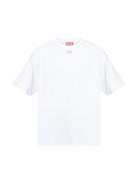 T-shirt DIESEL in jersey di cotone biologico, caratterizzata da girocollo e finiture a costine. È rifinita con un logo Oval D intagliato al laser e ricamato sotto il colletto.