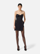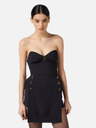 ? Scollo di ispirazione bustier, trattenuto e impreziosito dal dettaglio gioiello con logo.