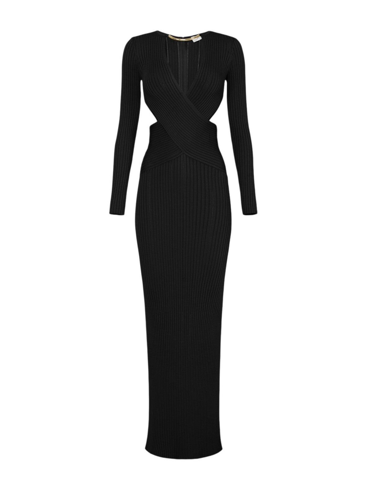 Abito Red Carpet Elisabetta Franchi in maglia à jour con dettaglio gioiello
