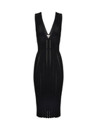 Abito in maglia ELISABETTA FRANCHI realizzato in viscosa con lavorazione con punto à jour, studiata per seguire ed esaltare le linee del corpo con traforature, trecce e disegni geometrici.