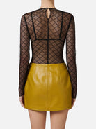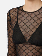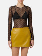 Un capo elegante e femminile, realizzato in tulle jacquard trasparente, che avvolge il corpo come una seconda pelle, enfatizzando la silhouette.