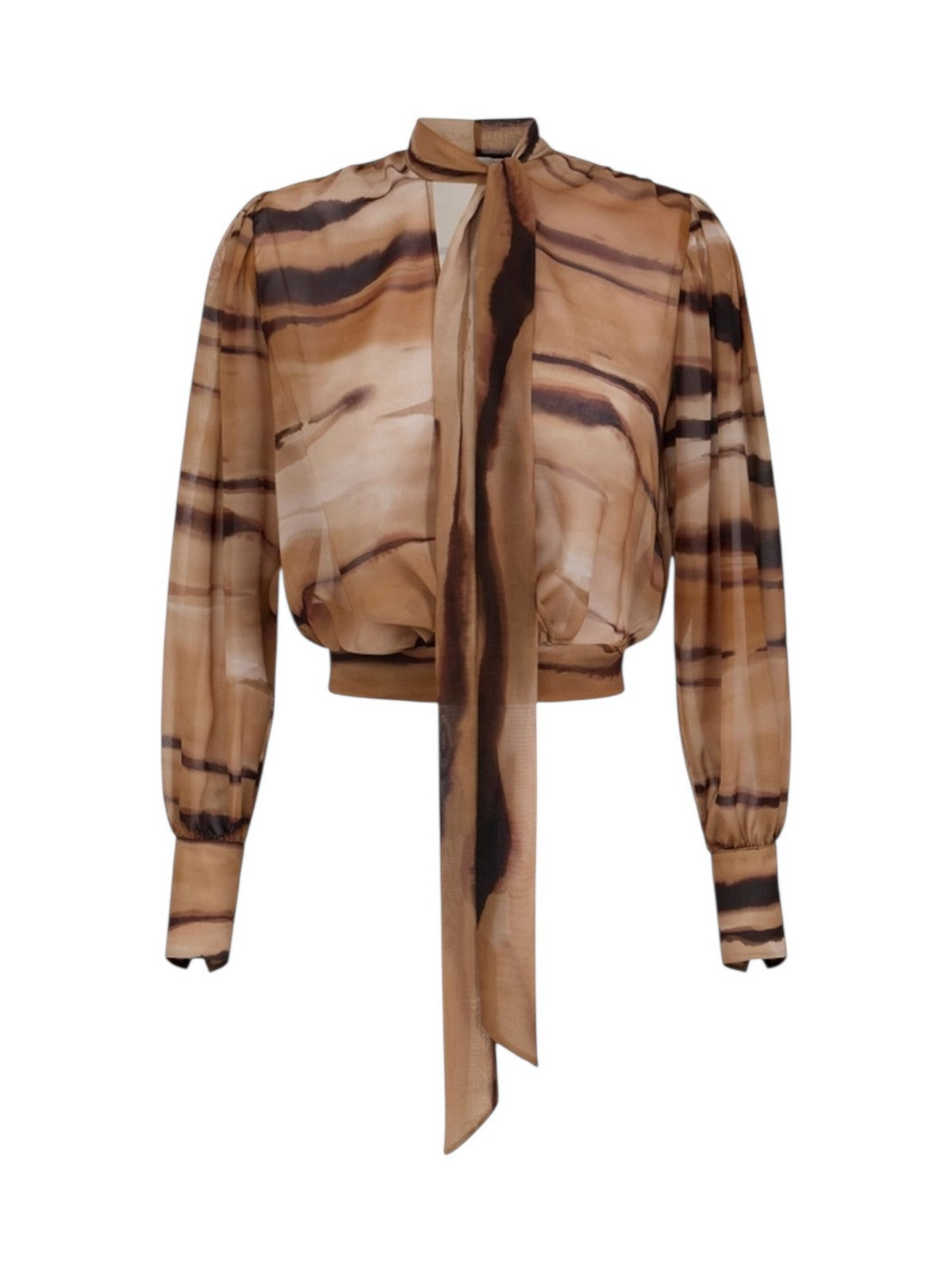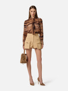 Blusa cropped ELISABETTA FRANCHI in chiffon, stampa all-over a tema tigre