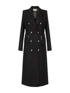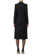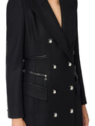 Cappotto ELISABETTA FRANCHI in doppio crêpe dalla vestibilità slim. Il capo ha spalle strutturate, rever a lancia, patte. È impreziosito dai bottoni smaltati che racchiudono uno scudetto con logo. I dettagli di zip e i filetti in tono esaltano il punto vita con un andamento diagonale. Chiusura doppiopetto.