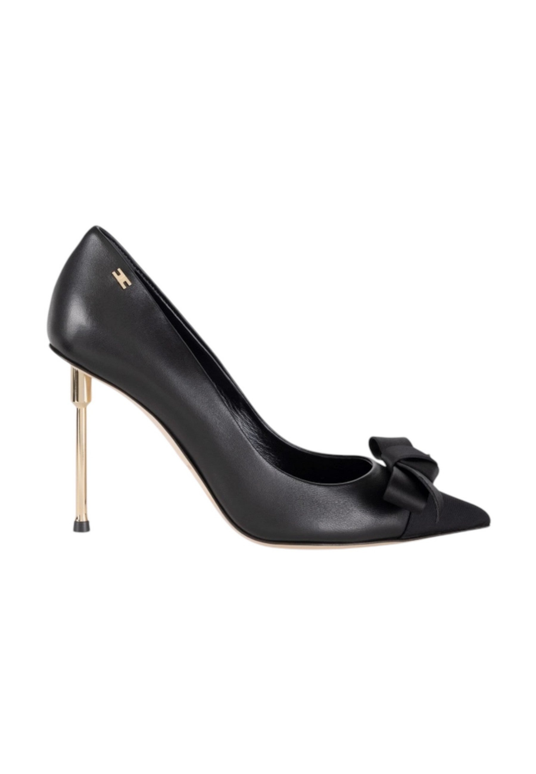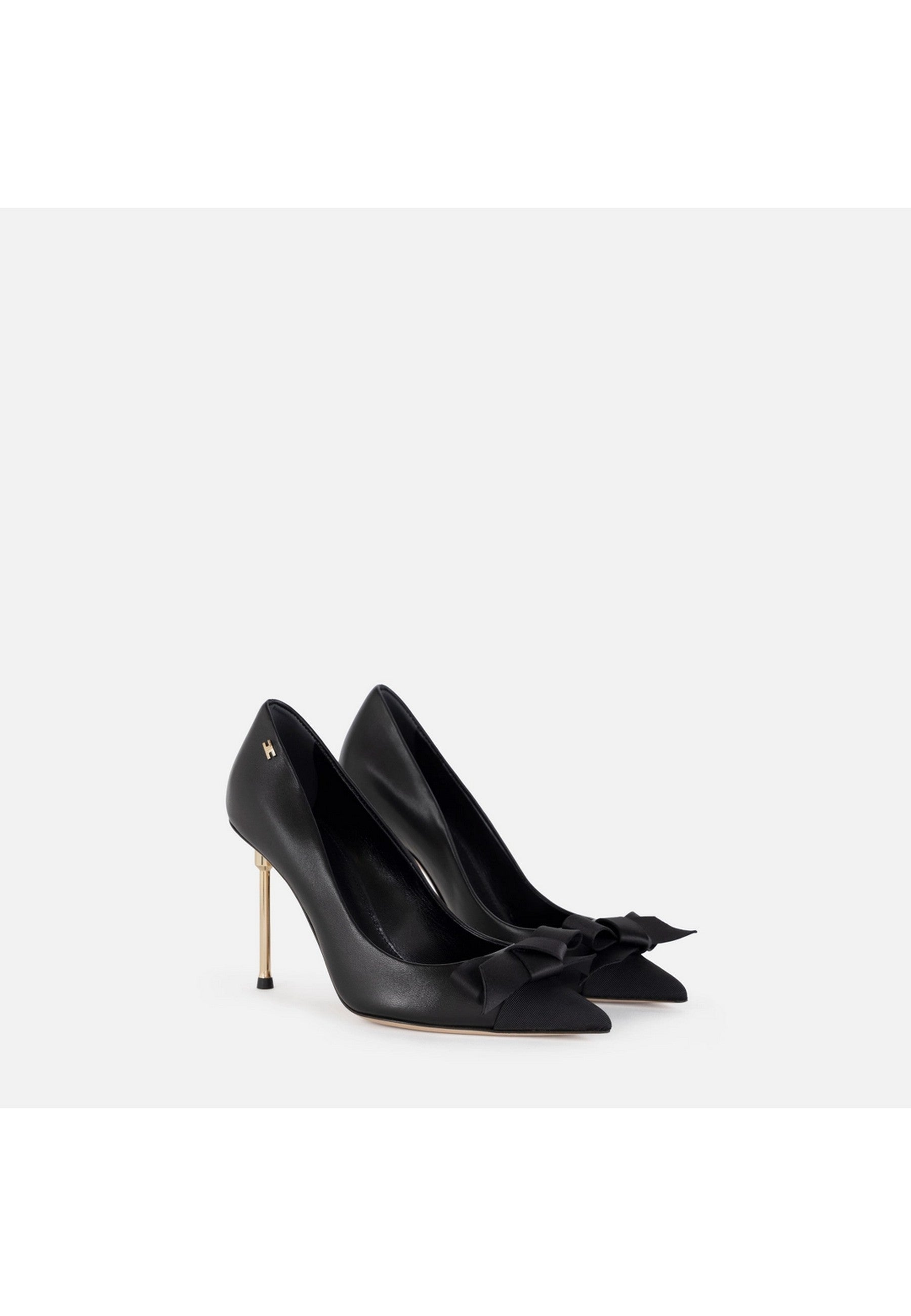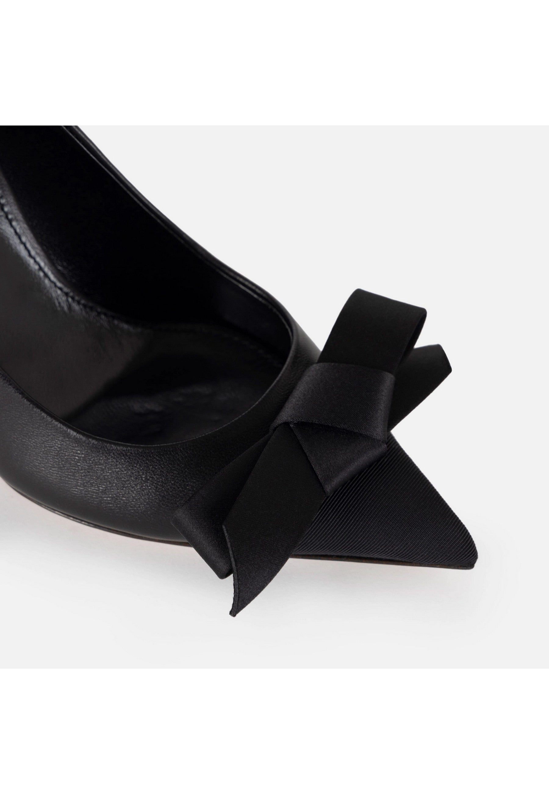 ? Punta affusolata a contrasto in gros-grain decorata con un maxi fiocco in raso