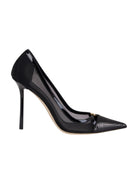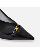 Pump ELISABETTA FRANCHI realizzate in pelle e rete con punta affusolata e tacco stiletto. Personalizzate dall'inserto in materiale sintetico effetto pelle con stampa pitone e dal dettaglio con logo.