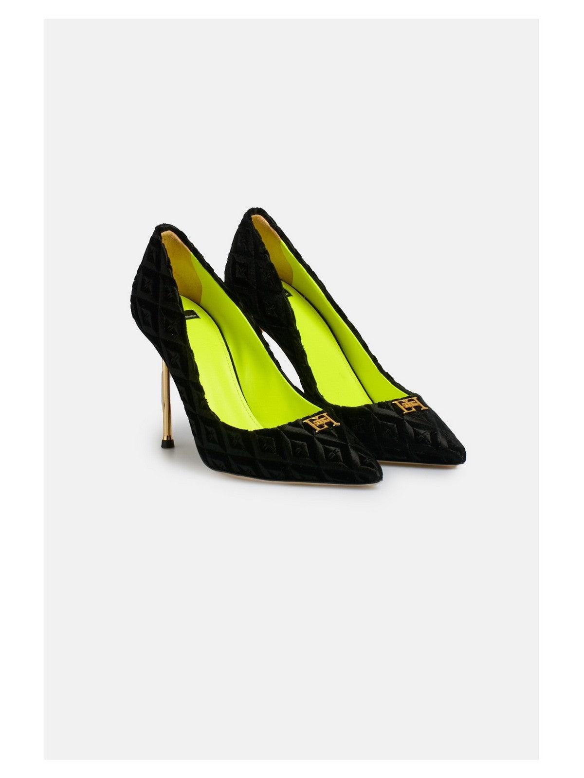 Décolleté ELISABETTA FRANCHI in velluto con motivo rombi matelassé all-over. Caratterizzato da tacco scultura e rivetto in metallo dorato