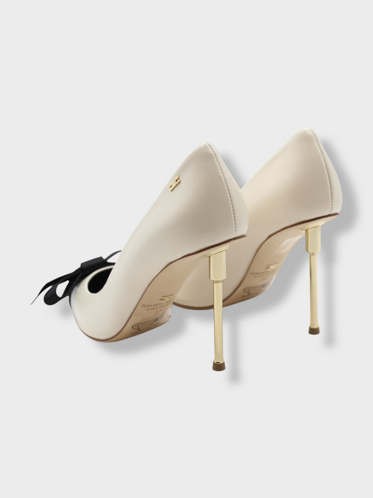 La sua tomaia in pelle morbida e lucida avvolge il piede con un look raffinato e sofisticato, mentre il fiocco delicato sulla punta aggiunge un tocco femminile e di classe, impreziosendo la scarpa con un dettaglio elegante. Il tacco a spillo, alto e sottile, slancia la figura e garantisce una camminata elegante, perfetta per ogni occasione speciale.