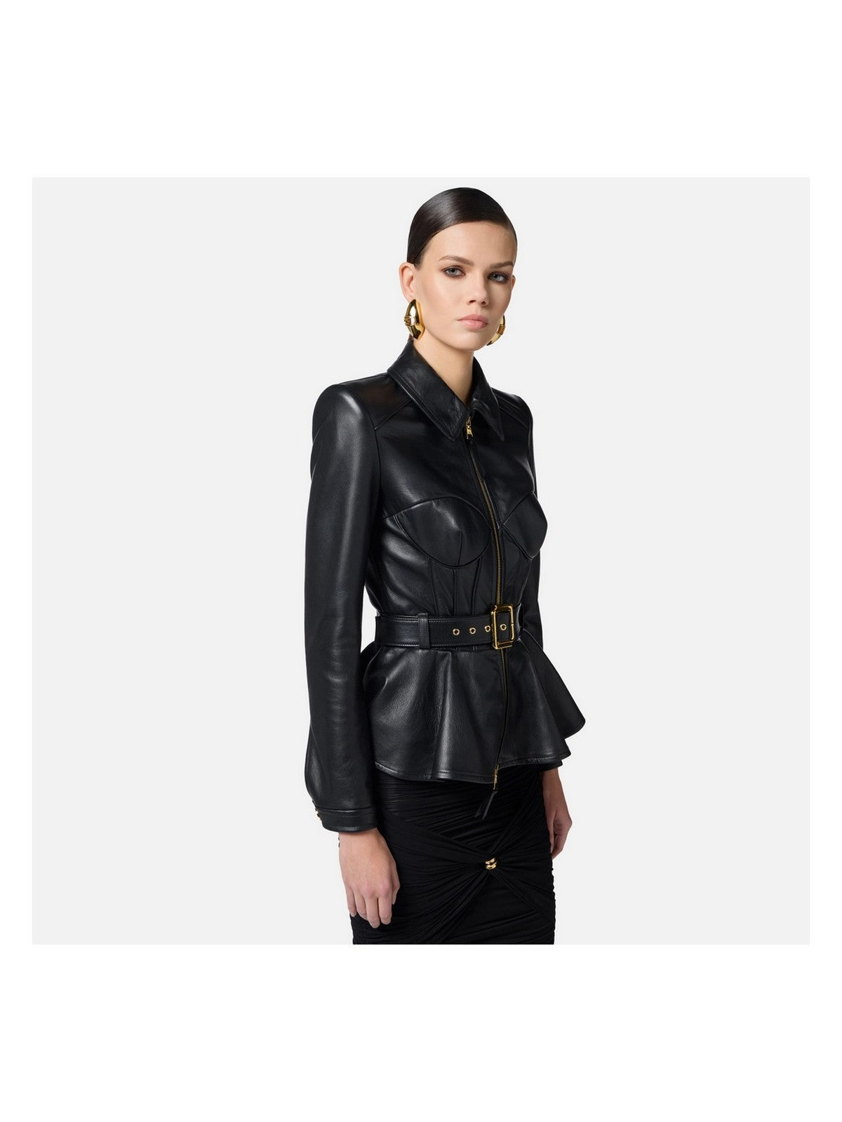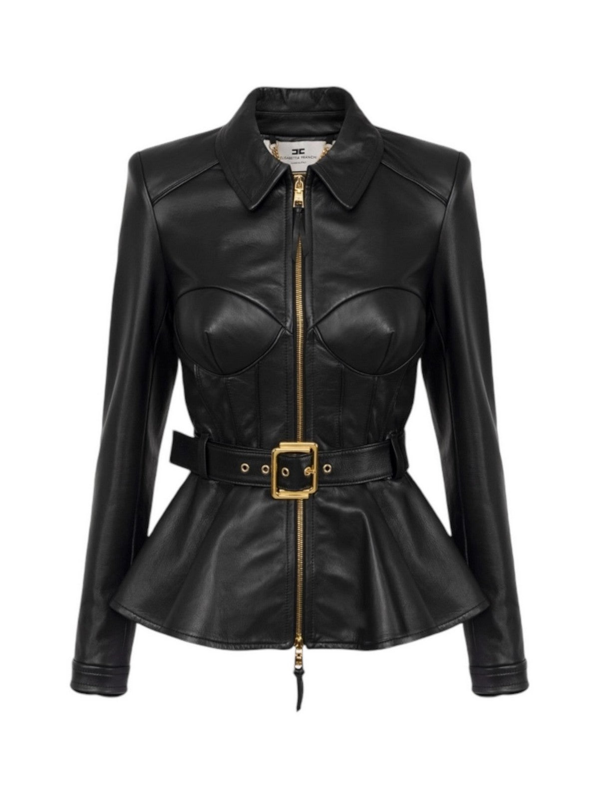 Giubbino ELISABETTA FRANCHI realizzato in morbida pelle, con profili tono su tono che disegnano un motivo bustier.