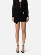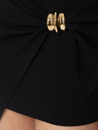 Questa minigonna è pensata per valorizzare la silhouette. Il design è impreziosito da un raffinato fiocco sui fianchi con gioiello in metallo. Una scelta ideale per chi cerca un equilibrio perfetto tra classe e femminilità.
