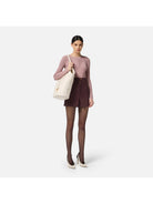 Gonna ELISABETTA FRANCHI in doppio crêpe dalla vestibilità slim. È personalizzata da motivi di zip incorniciati da filetti in nappa tono su tono, la contropiega definisce il volume. Il bottone smaltato con logo aggiunge un dettaglio luminoso. Parte della collezione Essential, per costruire il guardaroba perfetto.