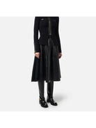 Gonna ELISABETTA FRANCHI in materiale sintetico effetto pelle craquelé dalla vestibilità regular. Impreziosita dagli accessori con logo in metallo dorato, ha linea a ruota con fondo svasato che dona leggerezza ed eleganza al fit.