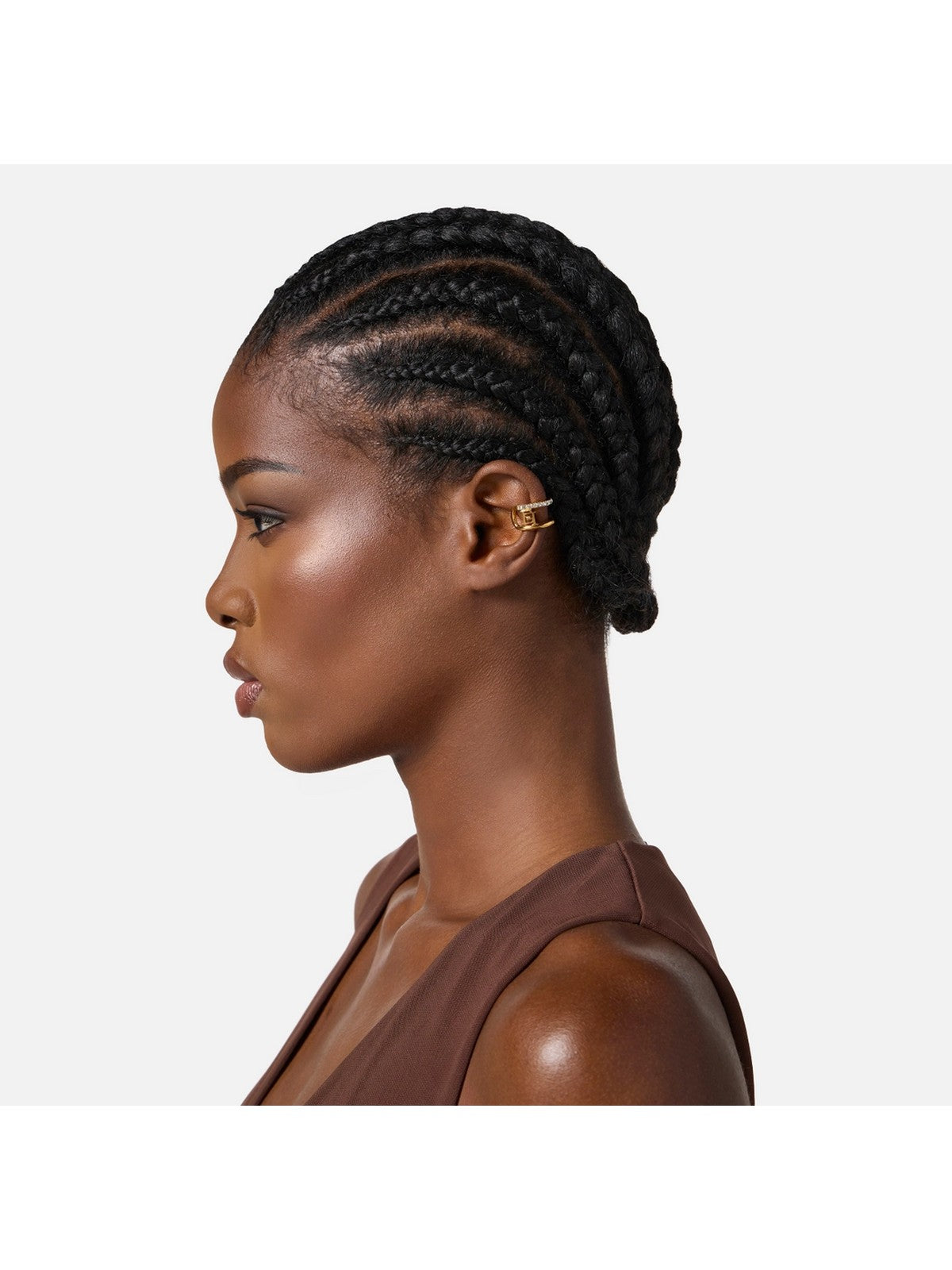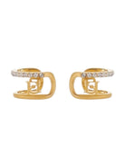 Orecchini earcuff ELISABETTA FRANCHI in metallo con finitura dorata, impreziositi dalle decorazioni in strass e dal doppio logo centrale.