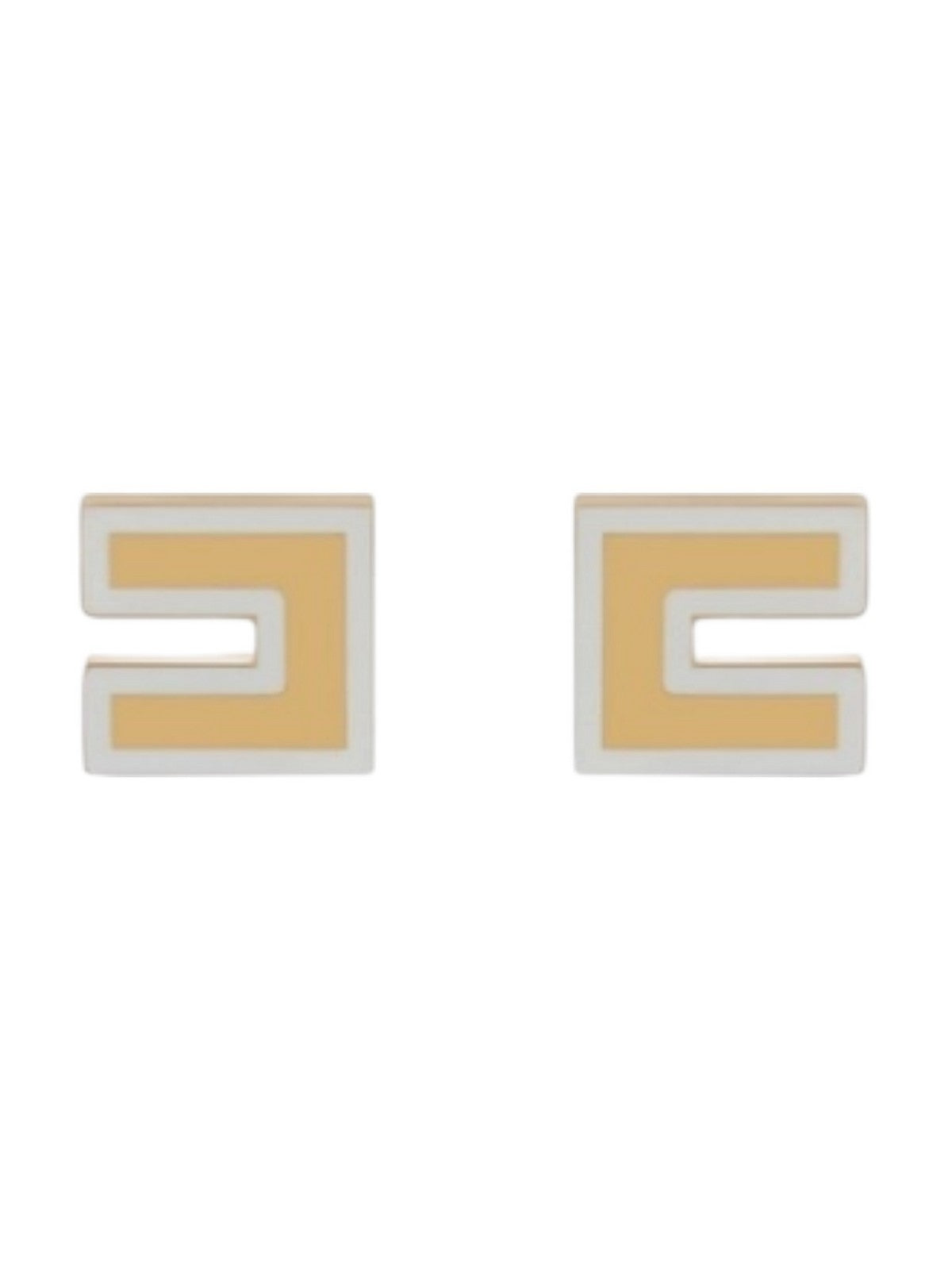 Orecchini ELISABETTA FRANCHI con logo caratterizzati dalla cornice esterna che crea un motivo bi-color. Chiusura con ago.