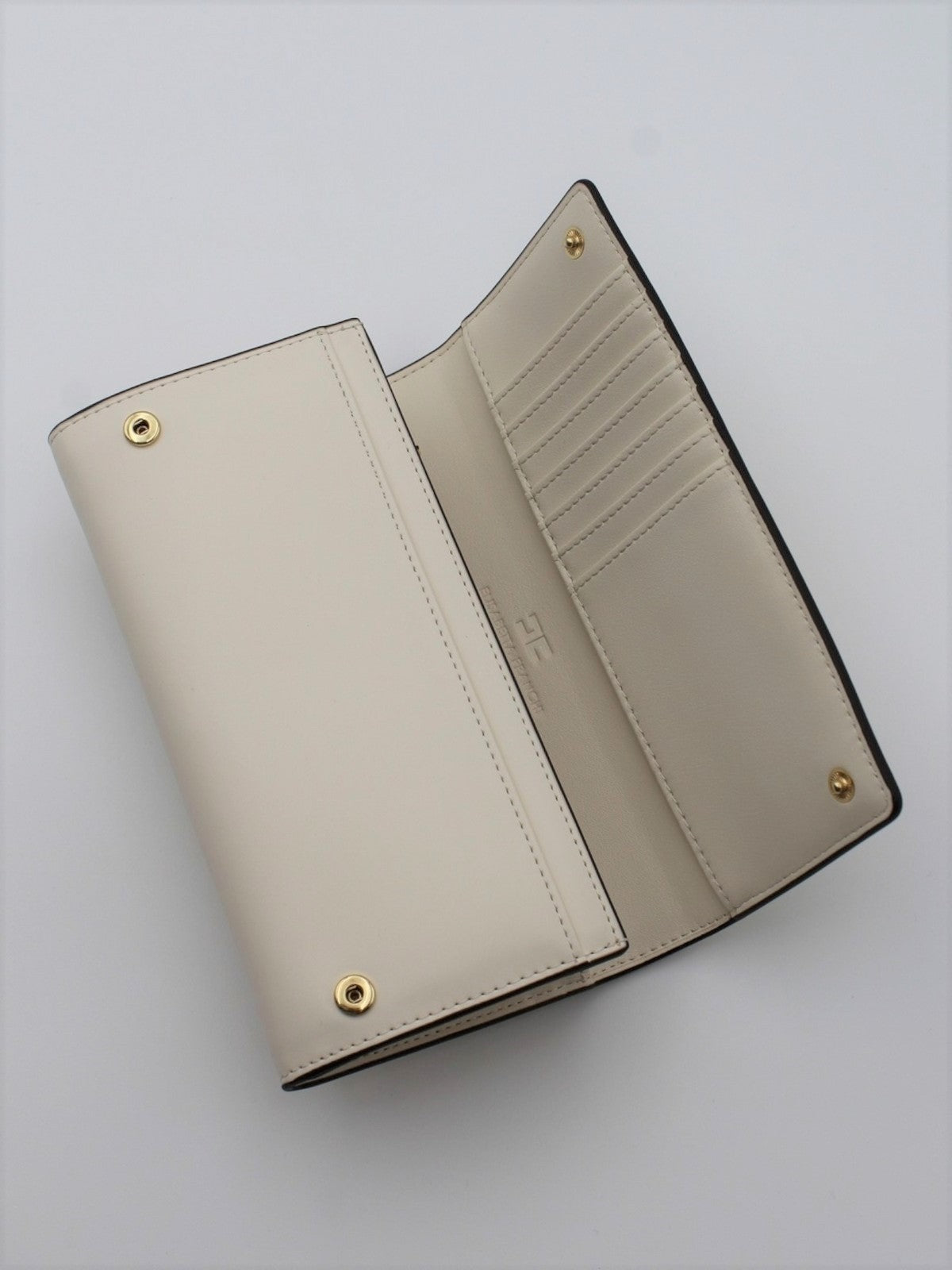 Questo portafoglio è l'accessorio perfetto per chi cerca un tocco di eleganza sofisticata senza rinunciare alla praticità. La chiusura automatica, con placca logo in metallo dorato, dona un'aria raffinata e distintiva. Il design compatto e ben strutturato la rende perfetta per portare con sé l'essenziale in modo ordinato e stiloso.