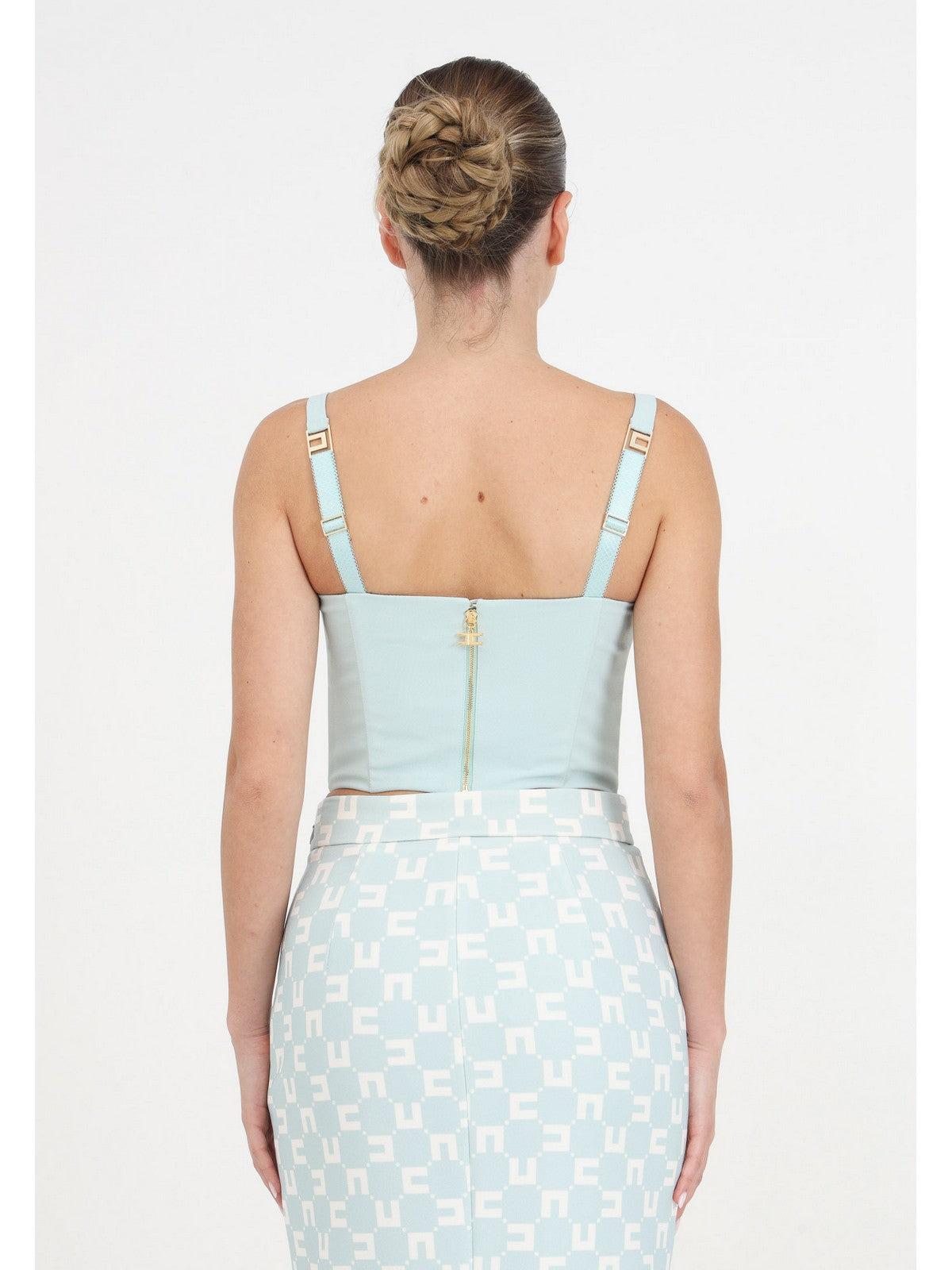 Top bustier ELISABETTA FRANCHI in doppio crêpe stretch. Scollo a cuore sorretto da spalline regolabili con placca logo smaltata.