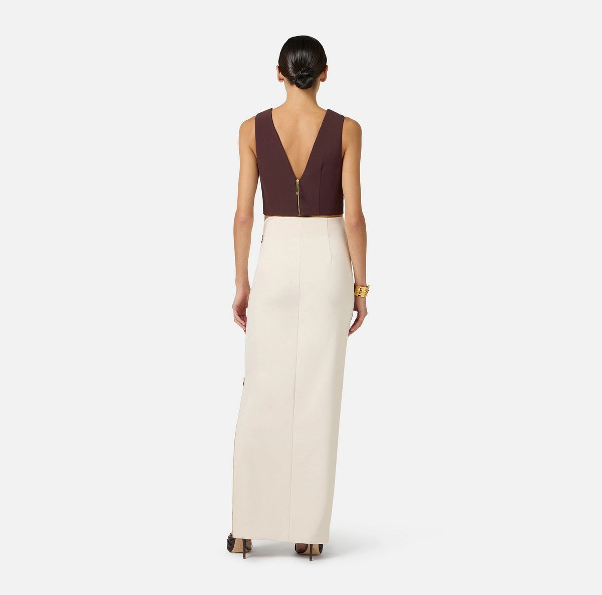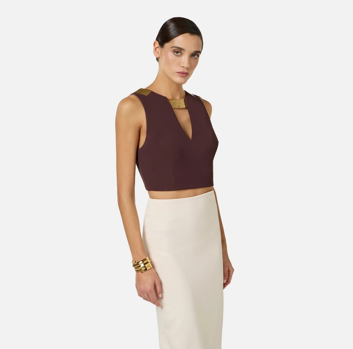 Top Elisabetta Franchi in doppio crêpe stretch con scollo gioiello