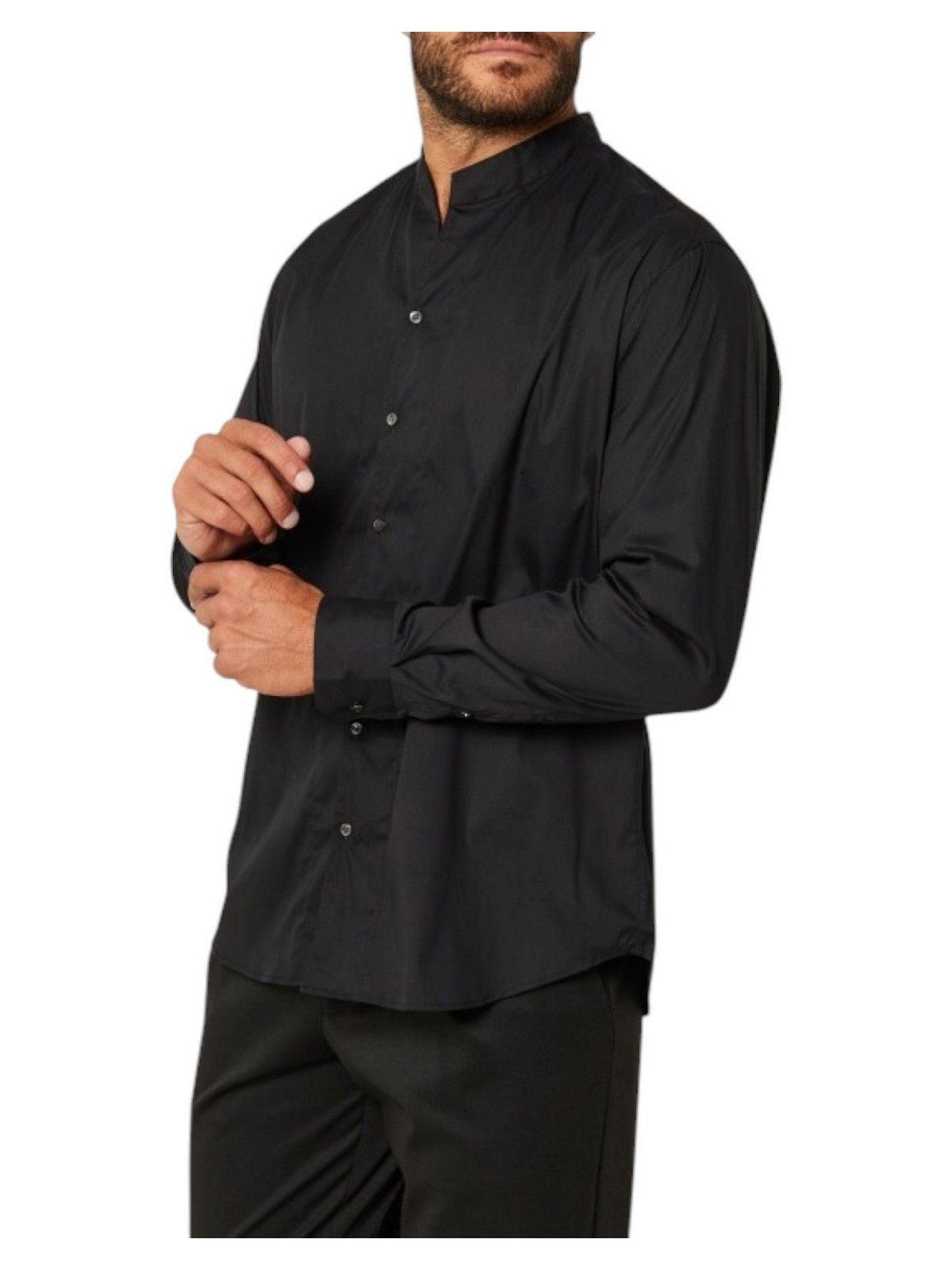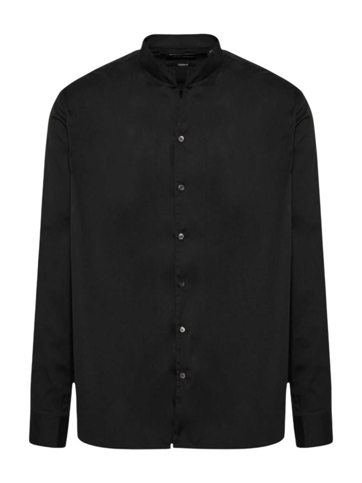 Camicia EMPORIO ARMANI provvista di emblematico collo guru in raso stretch di cotone.