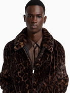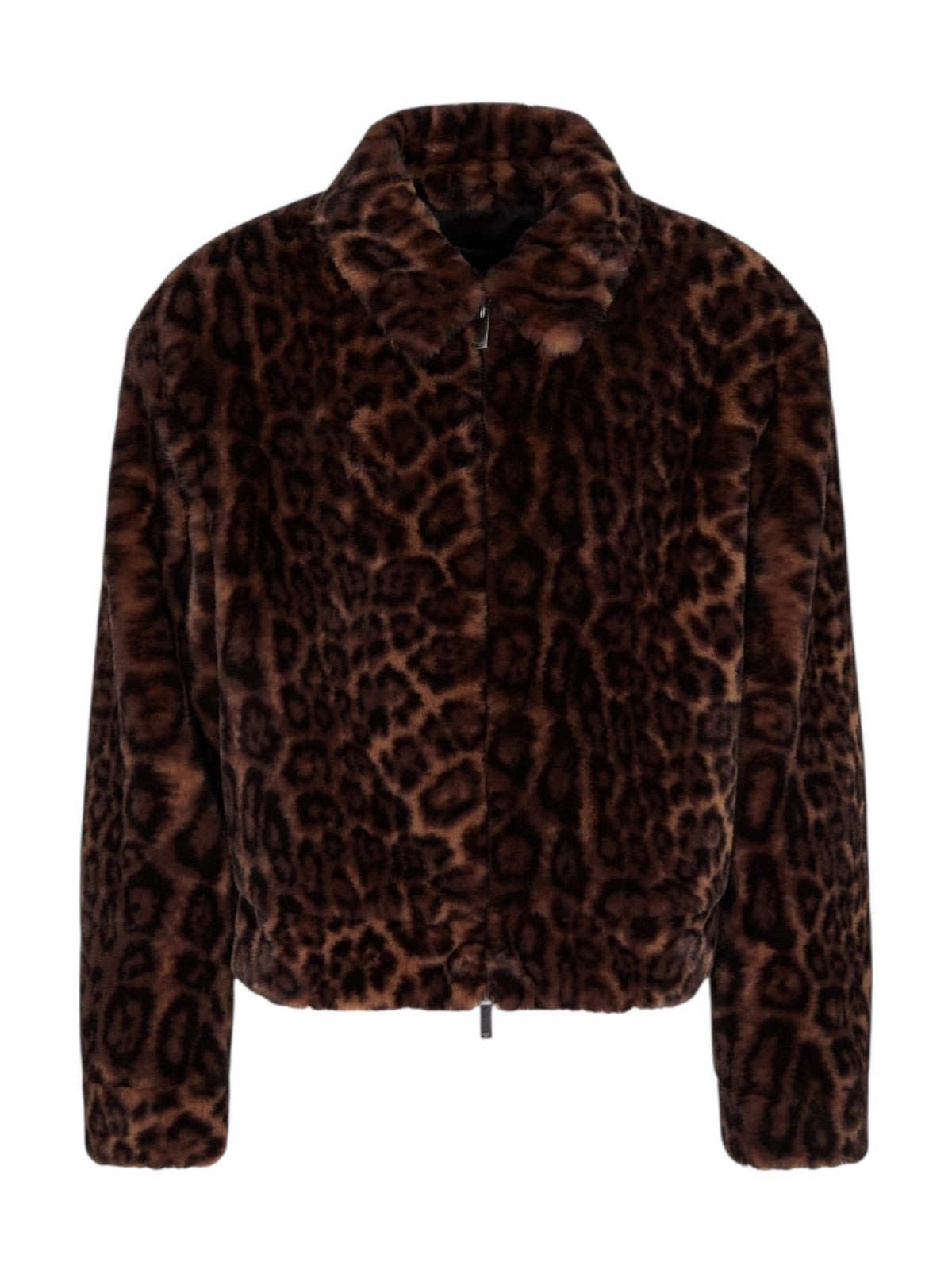 Blouson EMPORIO ARMANI realizzato in morbidissimo tessuto effetto fur con esclusiva stampa leopardata che percorre l'intero modello.