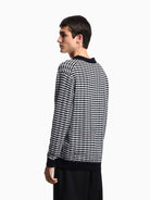Maglione EMPORIO ARMANI realizzato in pura lana vergine e caratterizzato da trama a punto goffrato che dona un aspetto materico e tridimensionale al capo.
