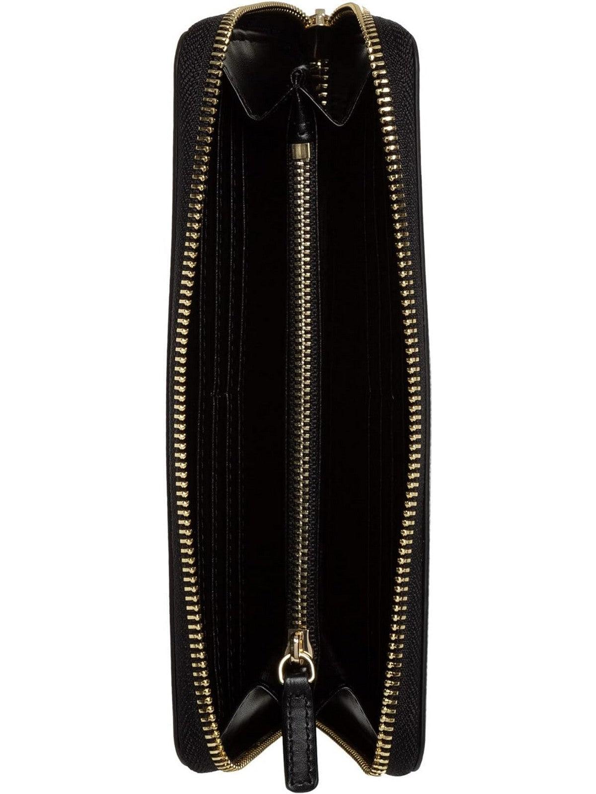 Portafoglio EMPORIO ARMANI in similpelle. Logo ad intarsio sul fronte color oro. Chiusura con zip. All'interno scomparti per banconote, carte business e documenti. Scomparto con zip per monete.