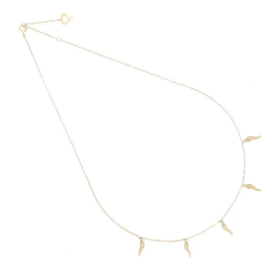 Girocollo in oro giallo 18 carati con cinque cornetti pendenti.