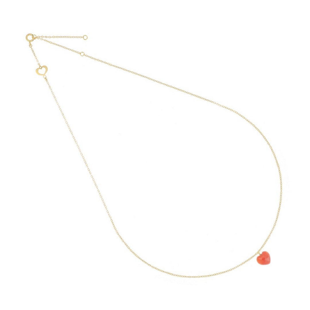 Girocollo realizzato in oro giallo 18 carati con cuore di corallo pendente.